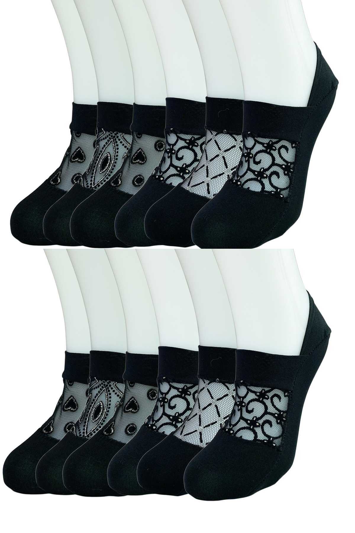 Paket İçeriği; 12 Adet Önü Transparan Kadın Fantezi Desenli Babet Çorap