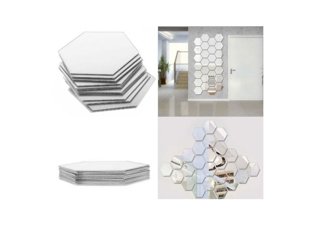12 Adet Yapışkanlı Dekoratif Akrilik Ayna Altıgen