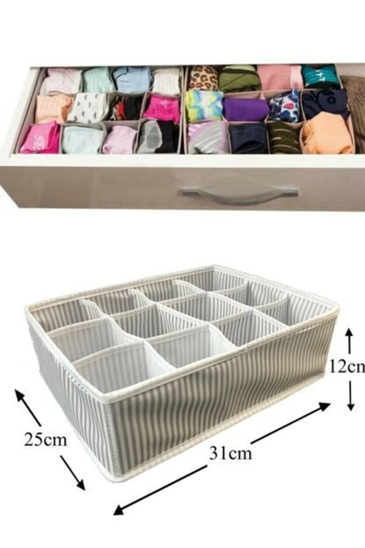 12 Bölmeli Pratik Bölmeli Çekmece Düzenleyici Organizer(İç Çamaşırı Kravat Çorap Düzenleyici)