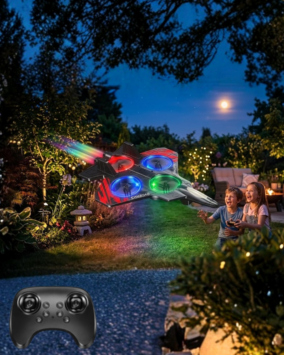 Uzaktan kumandalı LED ışıklı drone uçak, modern oyuncak teknolojisini eğlenceli bir uçuş deneyimi ile bir araya getiren dikkat çekici bir oyuncak modelidir. Fighter jet tasarımı sayesinde görsel olarak oldukça etkileyici bir görünüme sahiptir.Drone üzerinde bulunan güçlü pervane sistemi sayesinde havada dengeli hareket edebilir. Aerodinamik yapısı drone’un stabil uçuş yapmasına yardımcı olur. Bu özellik kullanıcıların drone kontrolünü daha rahat şekilde öğrenmesine yardımcı olur.Üründe bulunan LED ışık sistemi drone uçuşunu daha eğlenceli hale getirir. Renkli ışıklar drone’un havada dikkat çekici görünmesini sağlar. Özellikle akşam saatlerinde yapılan uçuşlarda drone’un LED ışıkları oldukça etkileyici bir atmosfer oluşturur.Uzaktan kumanda sistemi sayesinde drone kontrolü oldukça kolaydır. Kumanda üzerinde bulunan kontrol tuşları ile drone ileri, geri, sağa ve sola hareket ettirilebilir. Ayrıca drone’un sahip olduğu 360 derece dönüş özelliği sayesinde havada akrobatik hareketler yapılabilir.Dayanıklı ve hafif gövde yapısı uzun süreli kullanım için avantaj sağlar. Drone küçük darbelere karşı daha dayanıklı olacak şekilde tasarlanmıştır.Drone oyuncak, teknoloji oyuncaklarını seven kullanıcılar için eğlenceli bir alternatif sunar. Park, bahçe ve geniş açık alanlarda rahatlıkla kullanılabilir. Ayrıca hediye olarak tercih edilebilecek dikkat çekici ve eğlenceli bir oyuncak modelidir.
