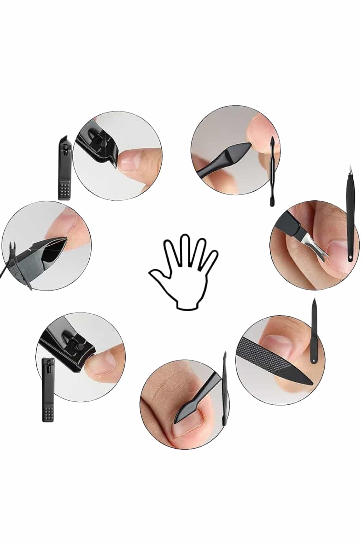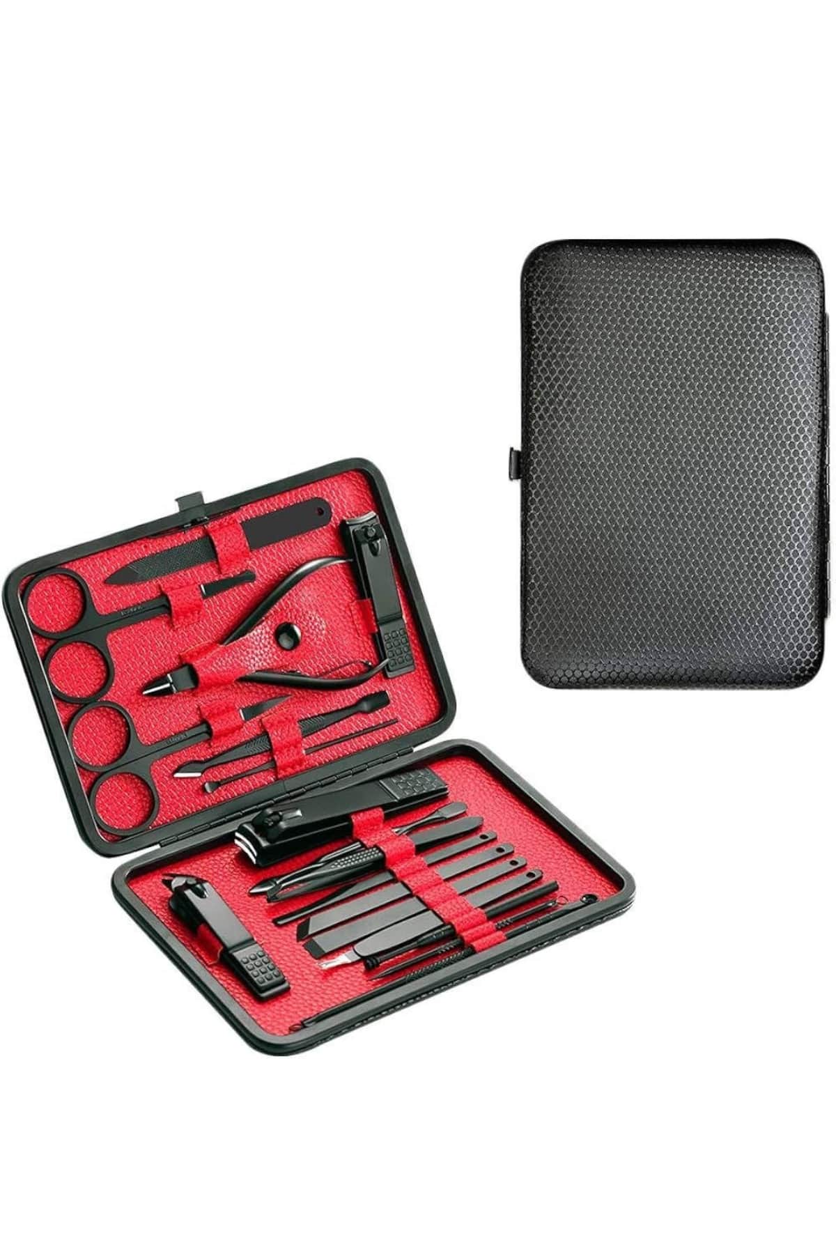 Profesyonel bakım deneyimini evinize taşıyan 17 parçalık bu özel manikür seti, el ve ayak bakımınızı zahmetsizce yapmanız için ihtiyacınız olan tüm araçları bir araya getiriyor. Paslanmaz çelikten üretilmiş parçaları sayesinde dayanıklı ve hijyenik bir kullanım sunan bu set, güvenli sterilizasyon sağlar, kolay temizlenir ve korozyona karşı dirençlidir. Yeni nesil siyah kaymaz parlatma teknolojisi ile geliştirilmiş keskin yapısı, kavramayı kolaylaştırarak daha rahat kullanım imkanı sunar. Şık deri kaplama kutusu, tek tuşla açılabilir ve tüm parçaların düzenli bir şekilde saklanmasını sağlar. Hafif ve taşınabilir tasarımıyla çantanızda rahatça taşıyabilir, seyahatlerde yanınızda bulundurabilirsiniz. Büyük, küçük ve sivri uçlu tırnak makasları, törpü, cımbız, pedikür bıçakları, tırnak kaldırma aparatı, kulak temizleme aparatı gibi birçok farklı aparat içeren bu set, hem günlük kullanım için ideal hem de mükemmel bir hediye seçeneğidir.
