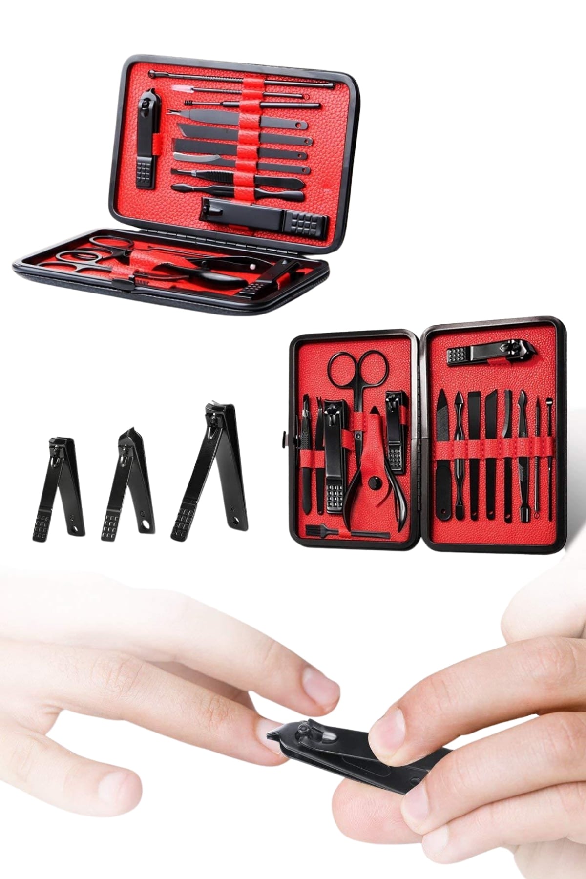 El ve ayak bakımınızı profesyonelce yapmanıza olanak tanıyan 17 parçalık bu özel manikür seti, paslanmaz çelikten üretilmiş dayanıklı ve uzun ömürlü aletlerden oluşur. Güvenli sterilizasyon sağlayan, kolay temizlenen ve korozyona karşı dayanıklı yapısıyla hijyenik bir kullanım sunar. Yeni nesil siyah kaymaz parlatma teknolojisi sayesinde keskinliği artırılmış olup, ergonomik tasarımı ile kavraması ve kullanımı son derece kolaydır. Şık ve sağlam deri kaplama kutusu, tek düğmeyle kolayca açılabilir ve hafif yapısı sayesinde çantanızda taşınabilir. Büyük, küçük ve sivri uçlu tırnak makasları, pedikür bıçakları, törpü, cımbız, kulak temizleme aparatı, tırnak temizleme çubuğu ve daha birçok farklı aparat içeren bu set, hem günlük kullanım hem de seyahatleriniz için ideal bir çözümdür. Hem kendiniz hem de sevdikleriniz için harika bir hediye alternatifi olacak bu set, bakım rutininizi tamamlamak için mükemmel bir yardımcıdır.