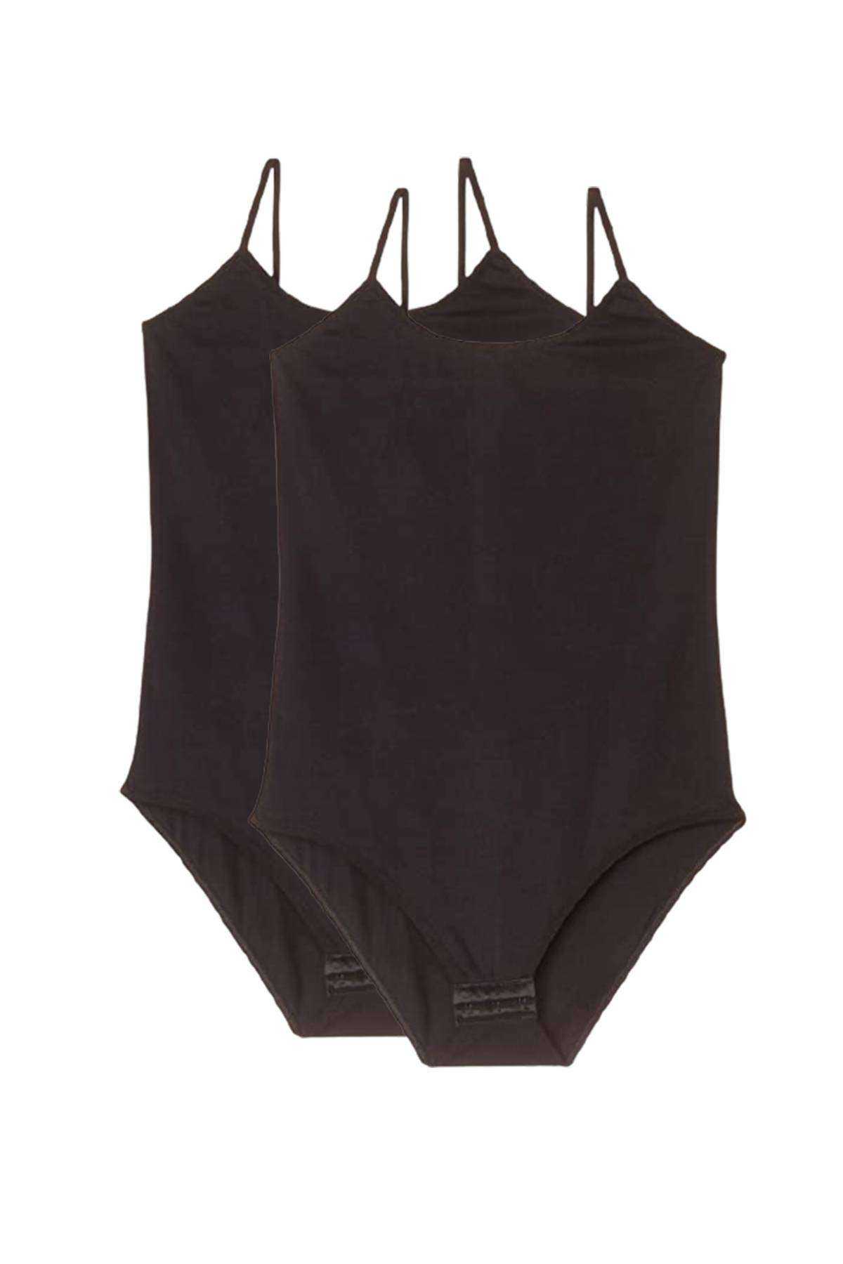 2 Adet Battal Beden İp Askılı Kadın Çıtçıtlı Body Siyah