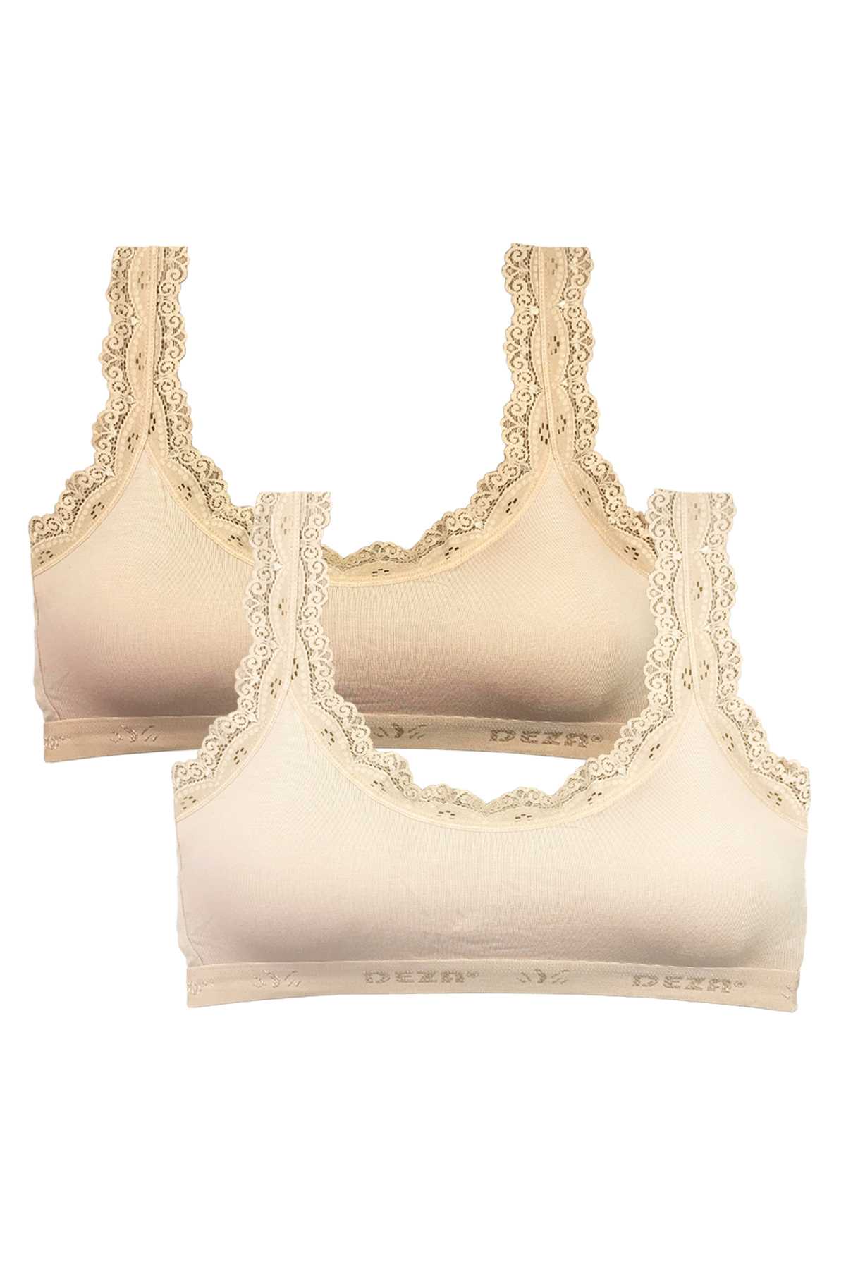 2 Adet Dantel Nakış İşlemeli Pedli Bambu Kadın Büstiyer Ten Krem