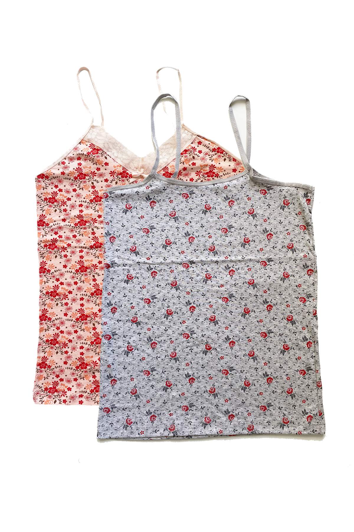 2 Adet Kadın Askılı Desenli Atlet Dantelli Empirme Pamuklu Penye D1-2