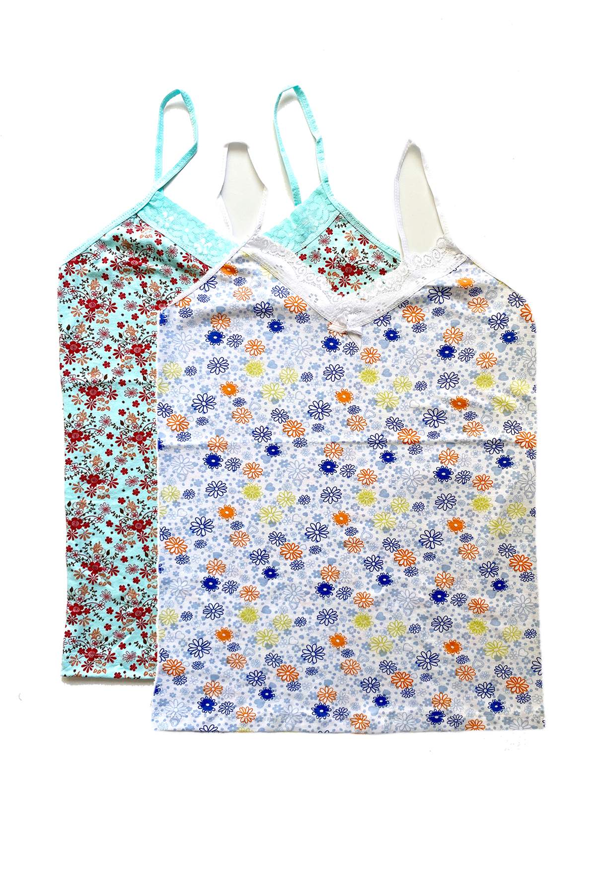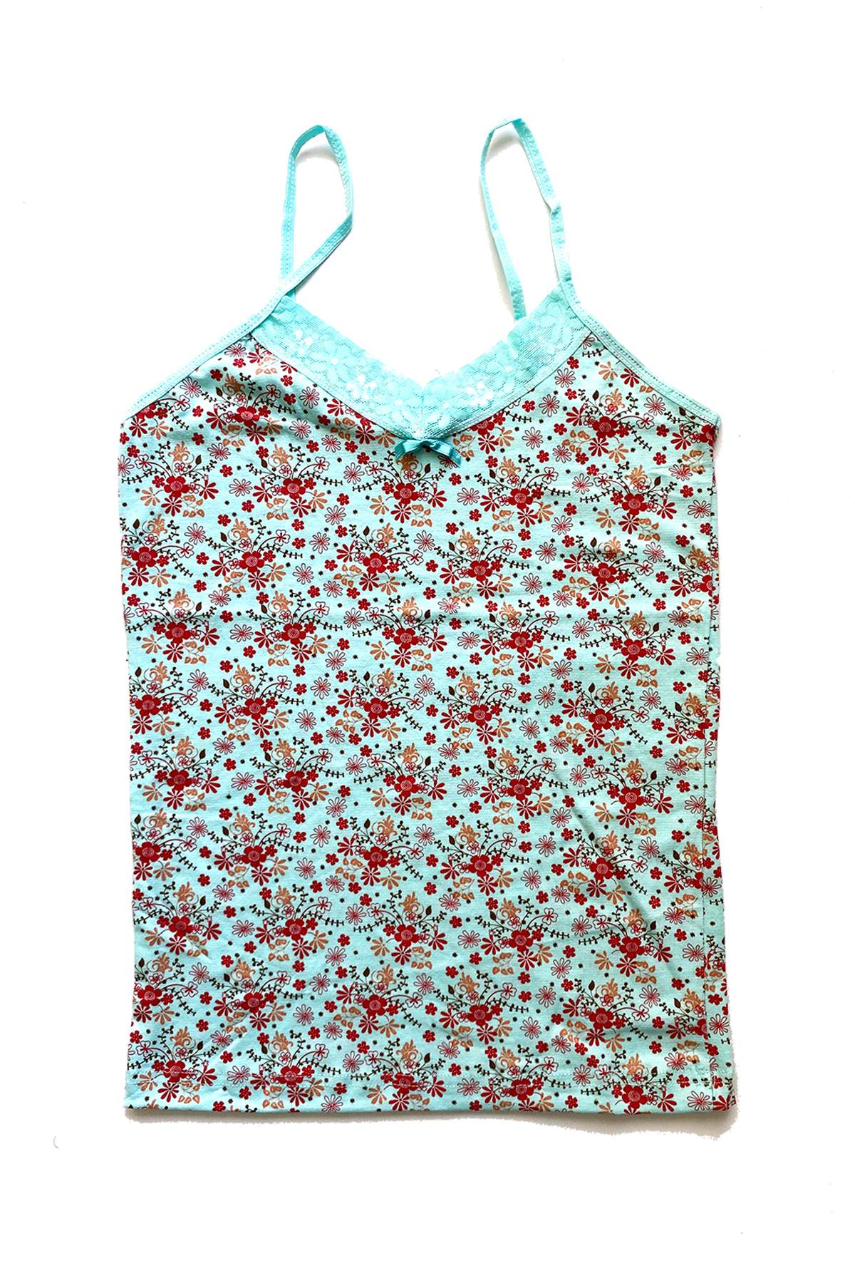 2 Adet Kadın Askılı Desenli Atlet Dantelli Empirme Pamuklu Penye D5-6