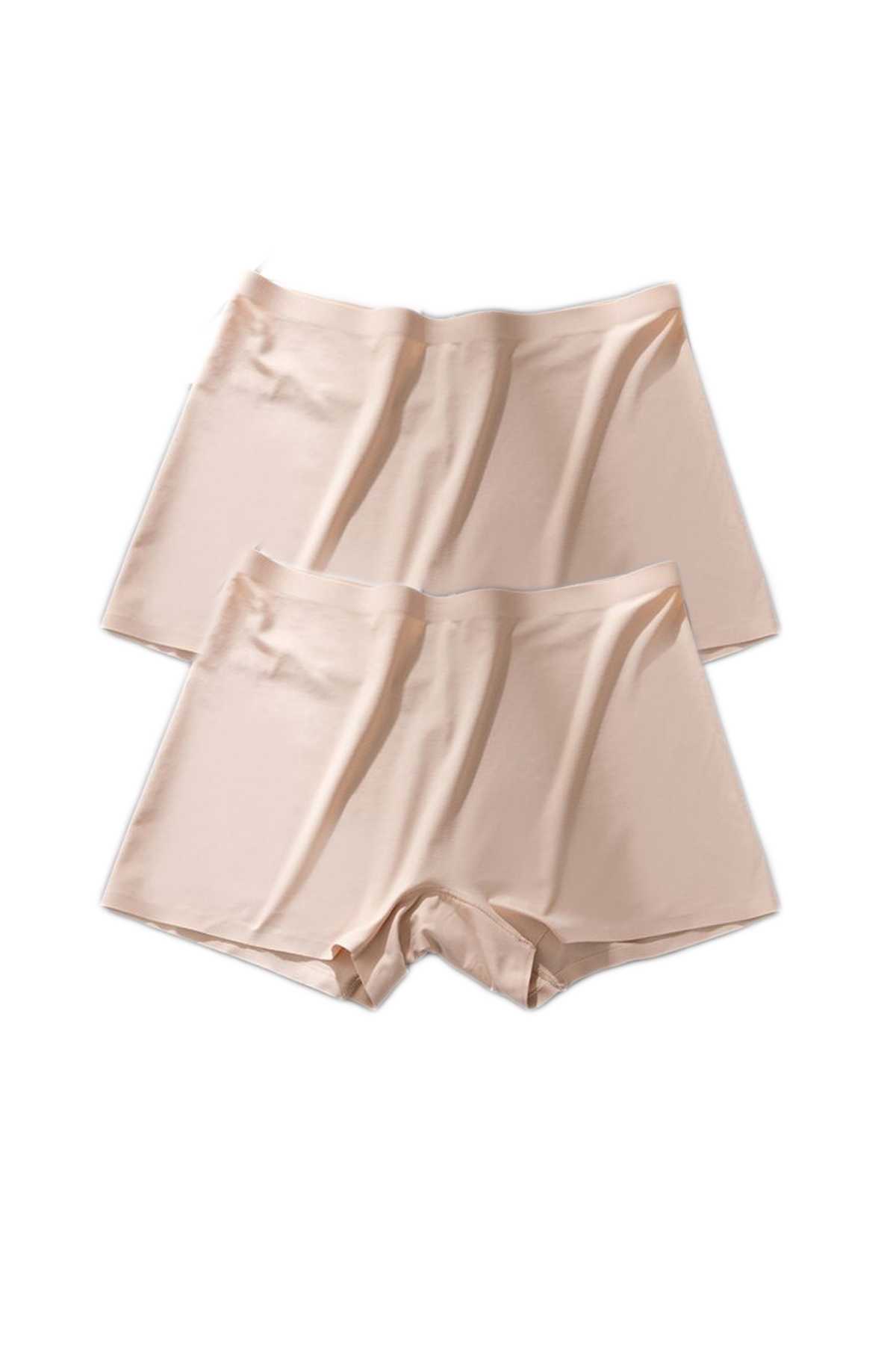 2 Adet Kadın Dikişsiz Görünmez İz Yapmaz Mini Şort Boxer Ten