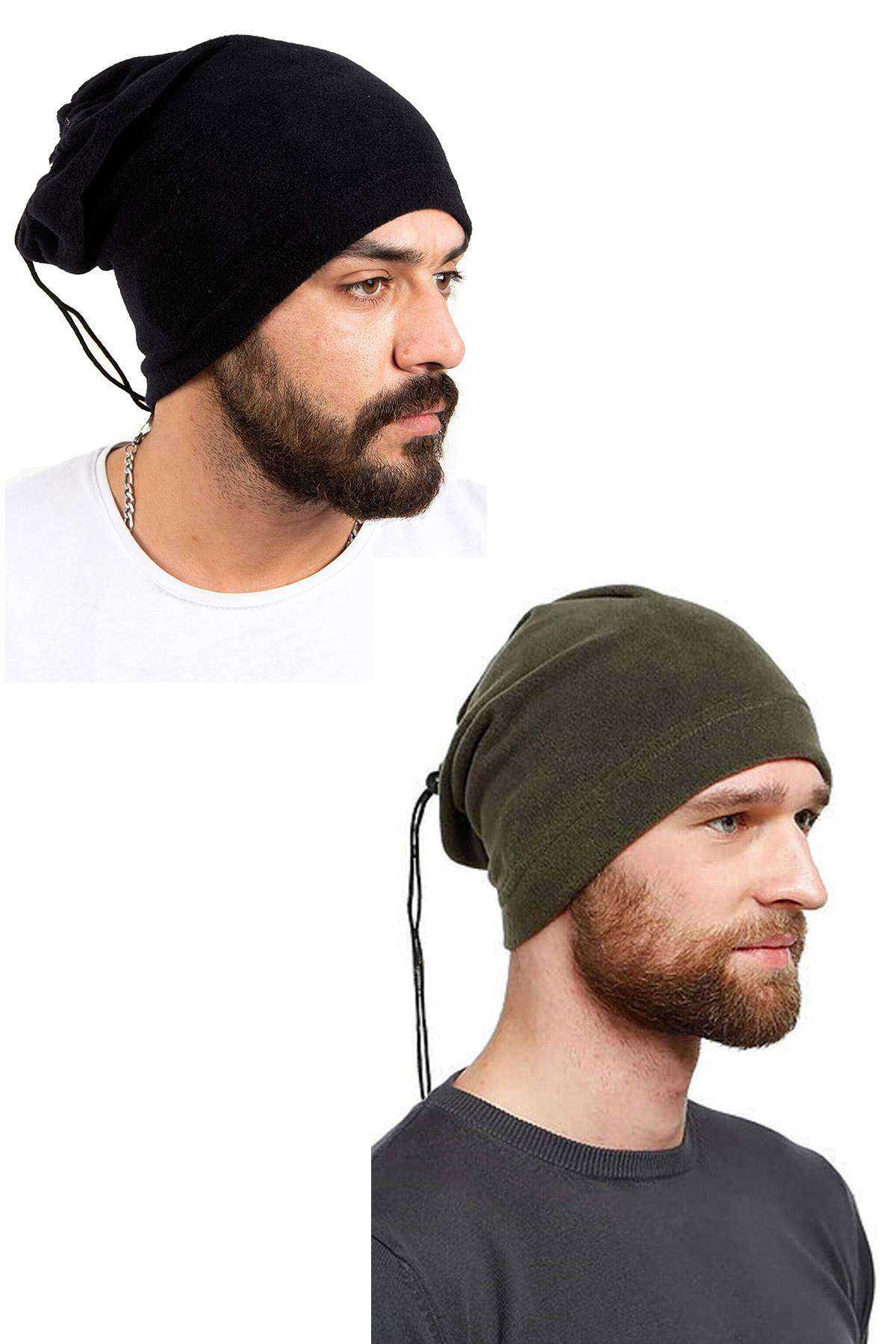 2 Adet Polar İpli Bere ve Boyunluk Siyah Yeşil