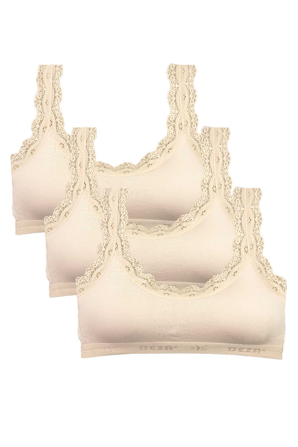 3 Adet Dantel Nakış İşlemeli Pedli Bambu Kadın Büstiyer Krem