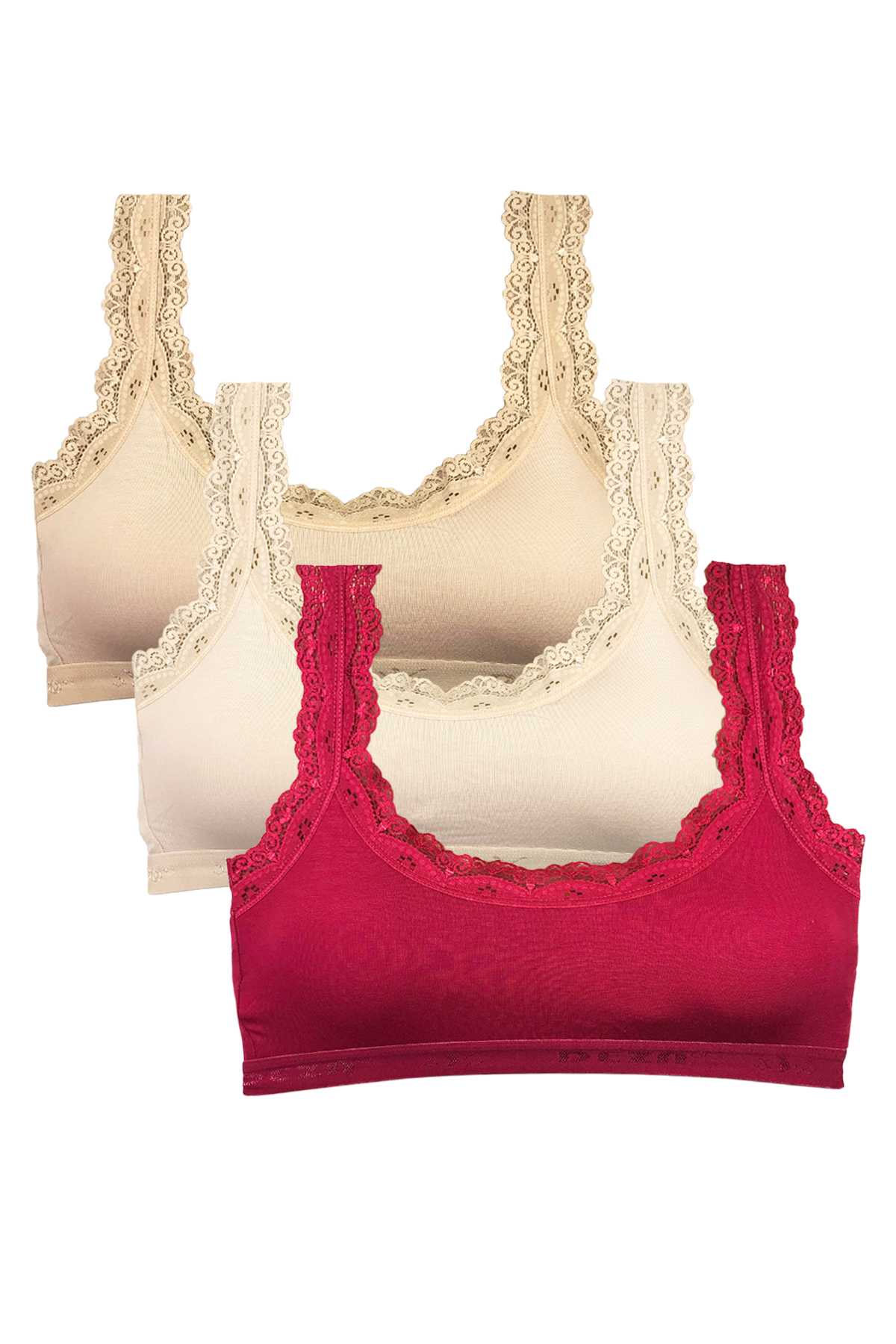 3 Adet Dantel Nakış İşlemeli Pedli Bambu Kadın Büstiyer Ten Krem Bordo