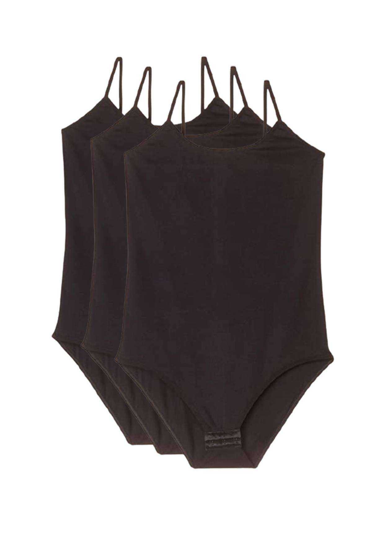 3 Adet İp Askılı Kadın Çıtçıtlı Body Siyah