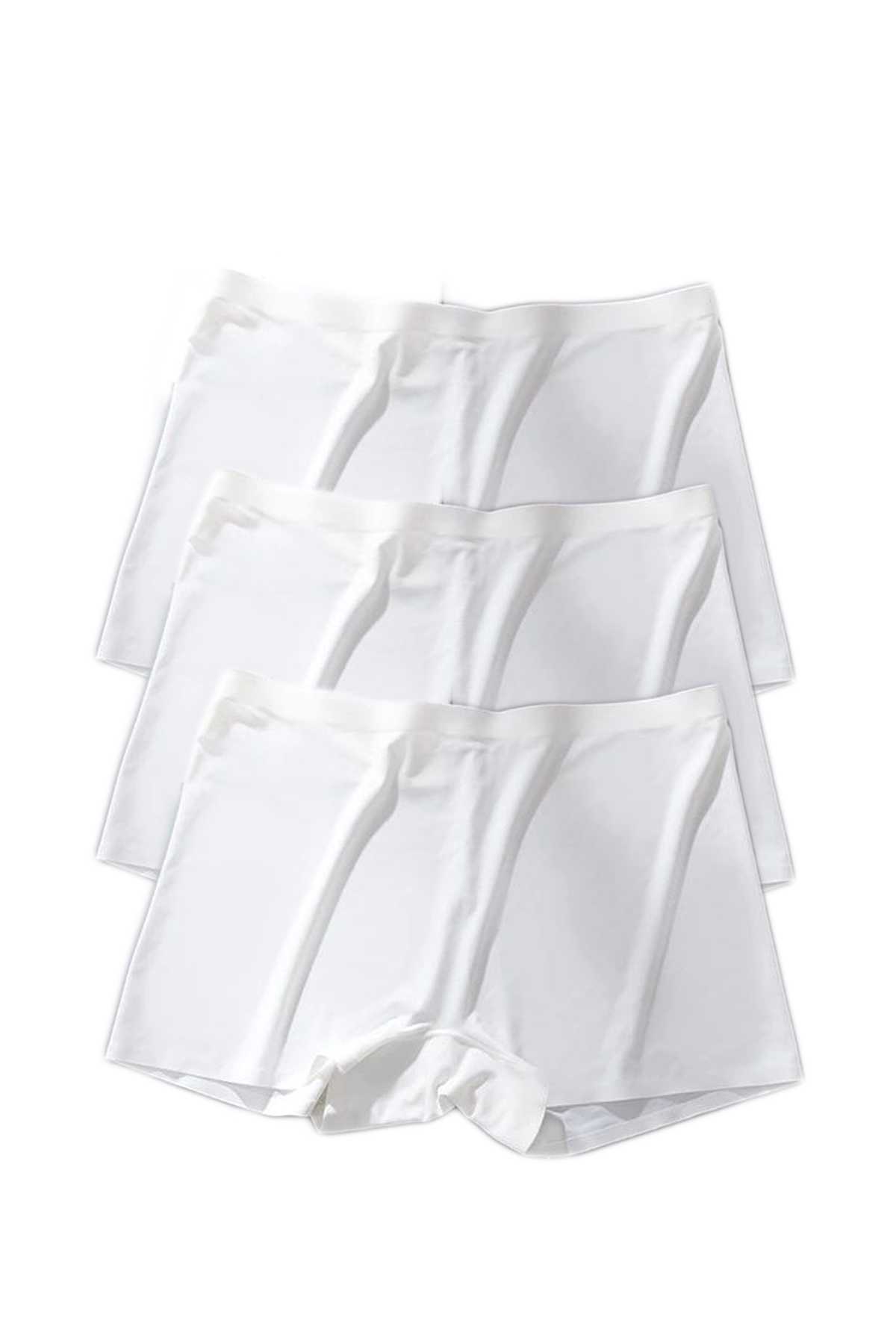 3 Adet Kadın Dikişsiz Görünmez İz Yapmaz Mini Şort Boxer Beyaz