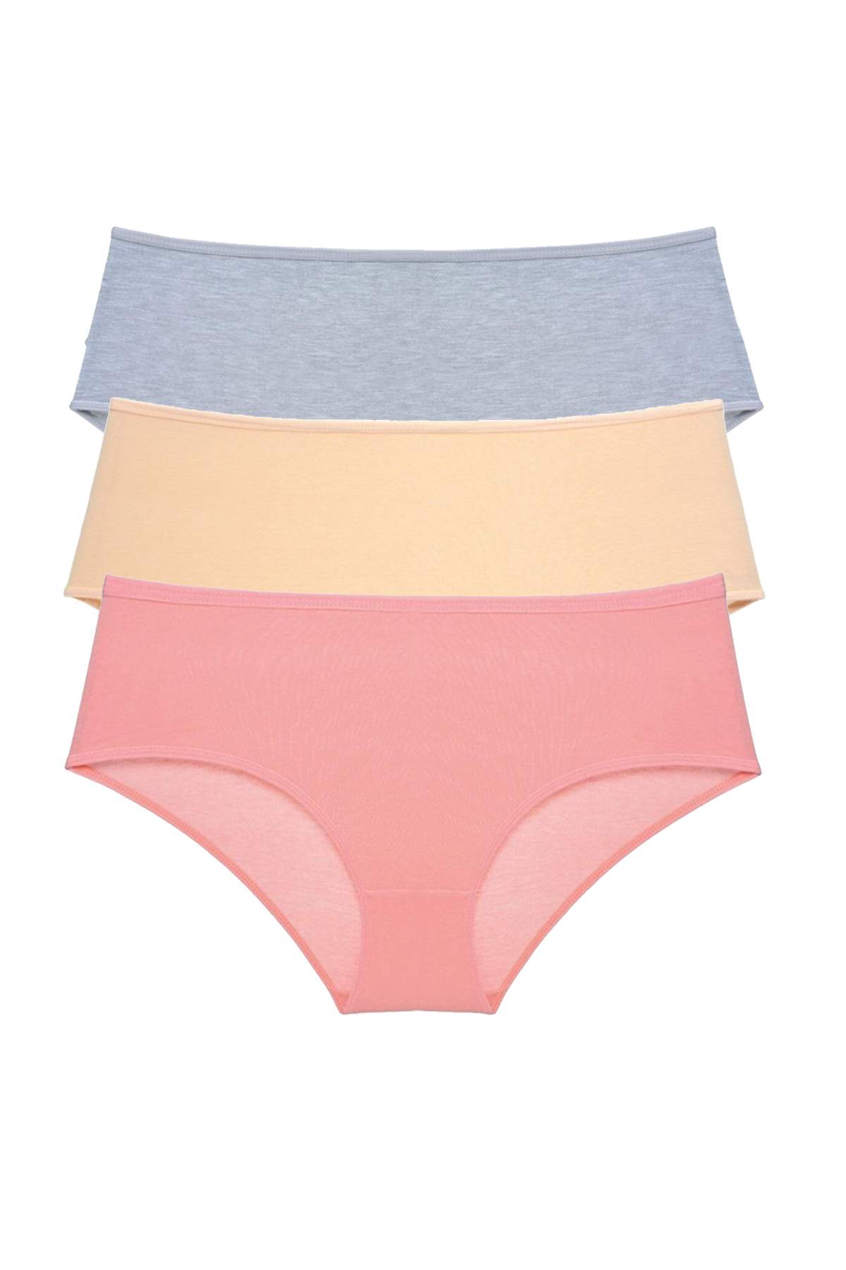 3 Adet Kadın Yüksek Bel Bato Külot Gri Ten Pudra