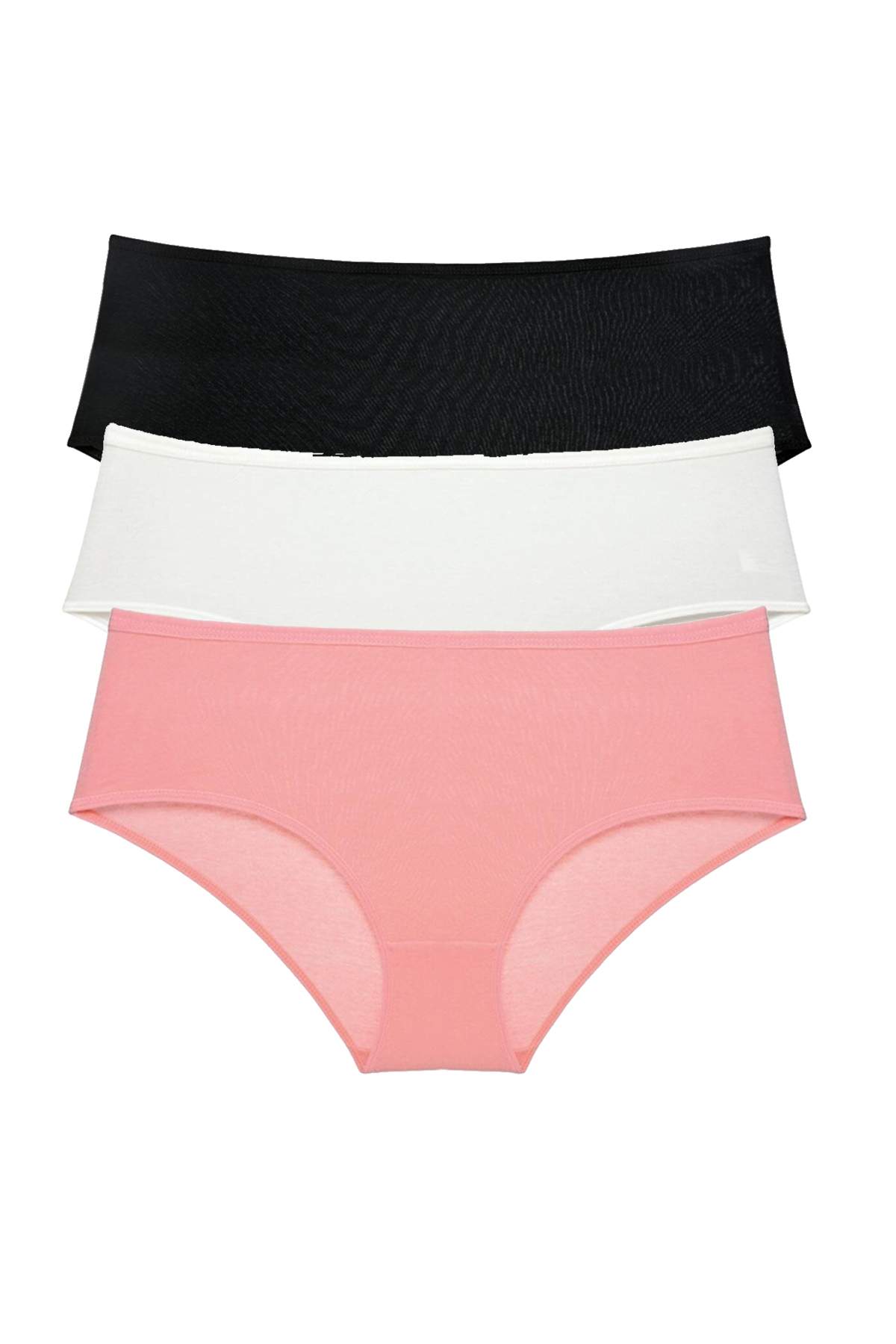 3 Adet Kadın Yüksek Bel Bato Külot Siyah Krem Pudra