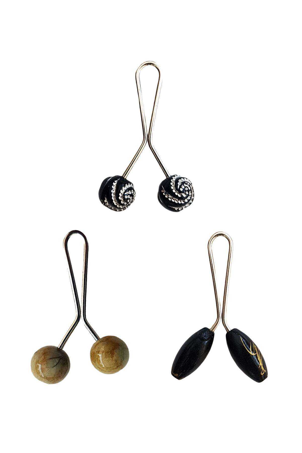 3 Adet Tesettür Eşarp ve Şal Klipsi Hardal Siyah Siyah Desenli