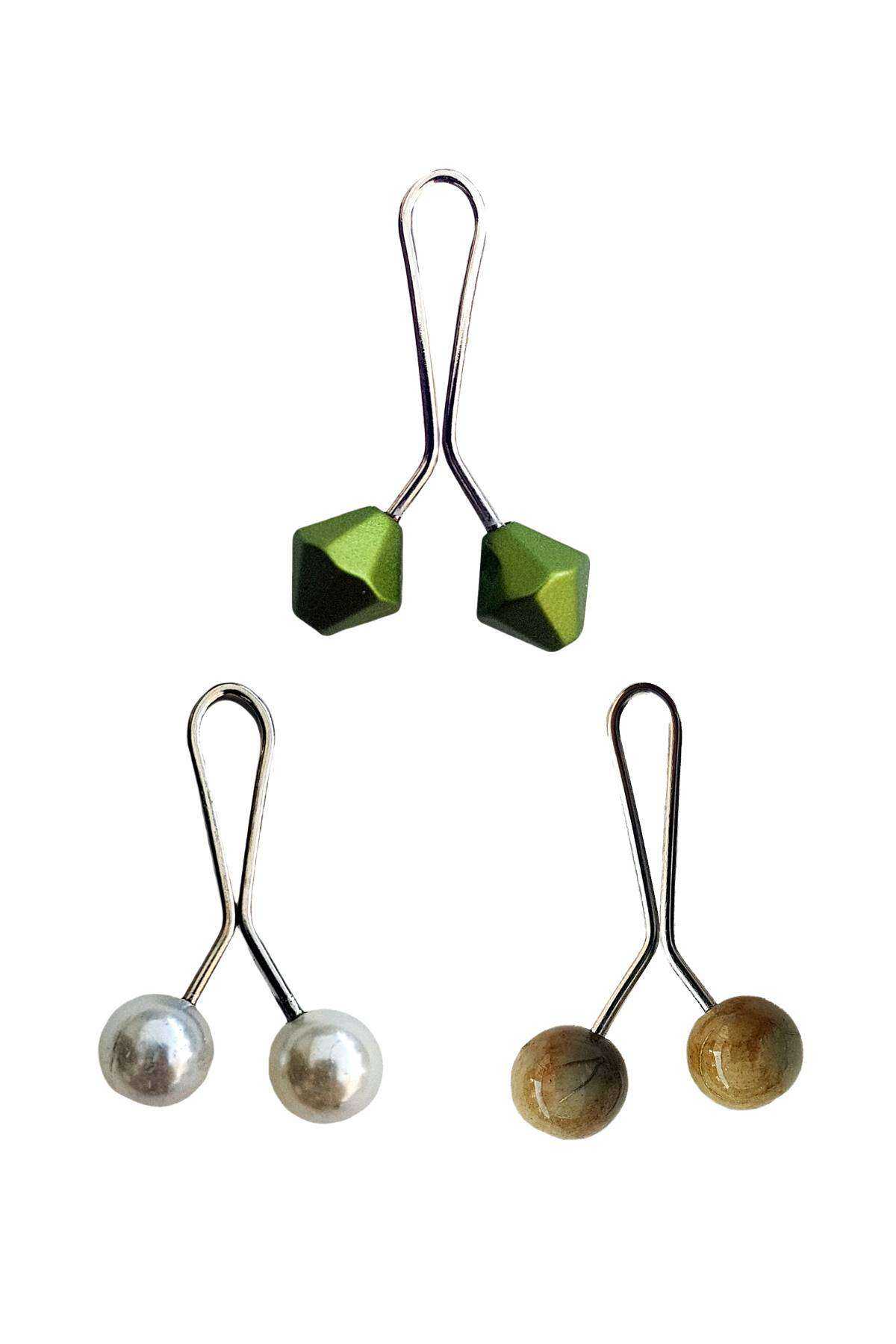 3 Adet Tesettür Eşarp ve Şal Klipsi İnci Beyaz Hardal Yeşil