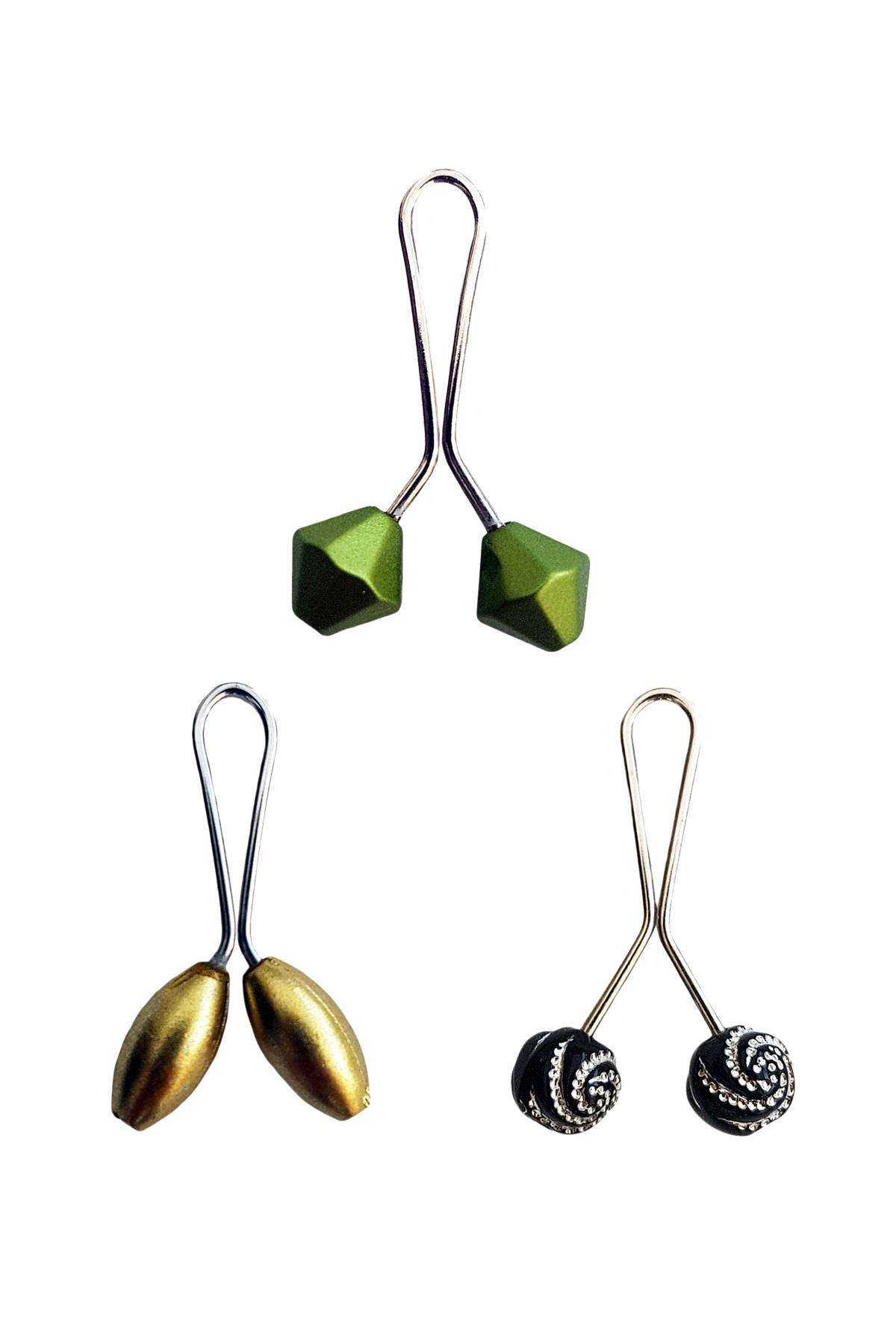 3 Adet Tesettür Eşarp ve Şal Klipsi Sarı Siyah Desenli Yeşil