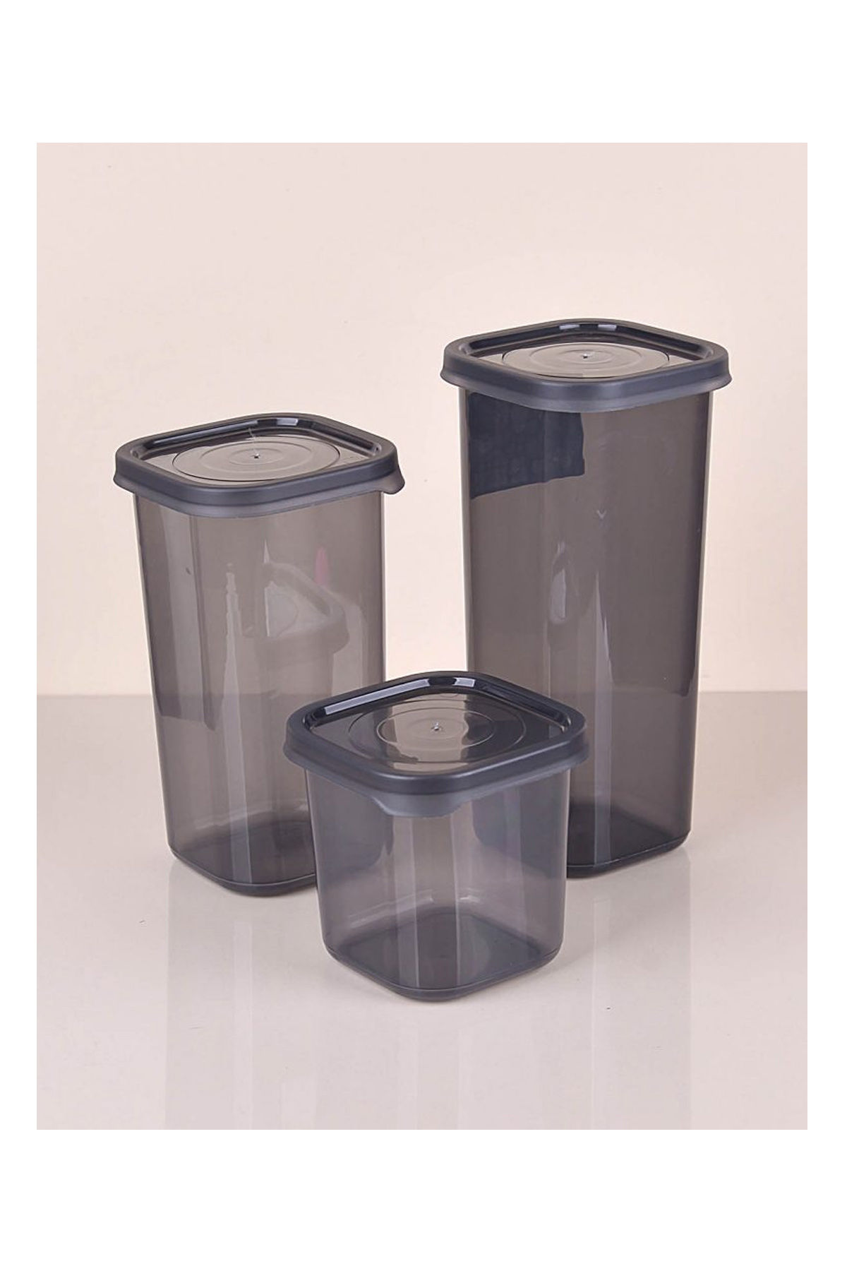 3 Boy Antrasit Sızdırmaz Kapaklı Dik Kare Erzak Saklama Kabı ANK150