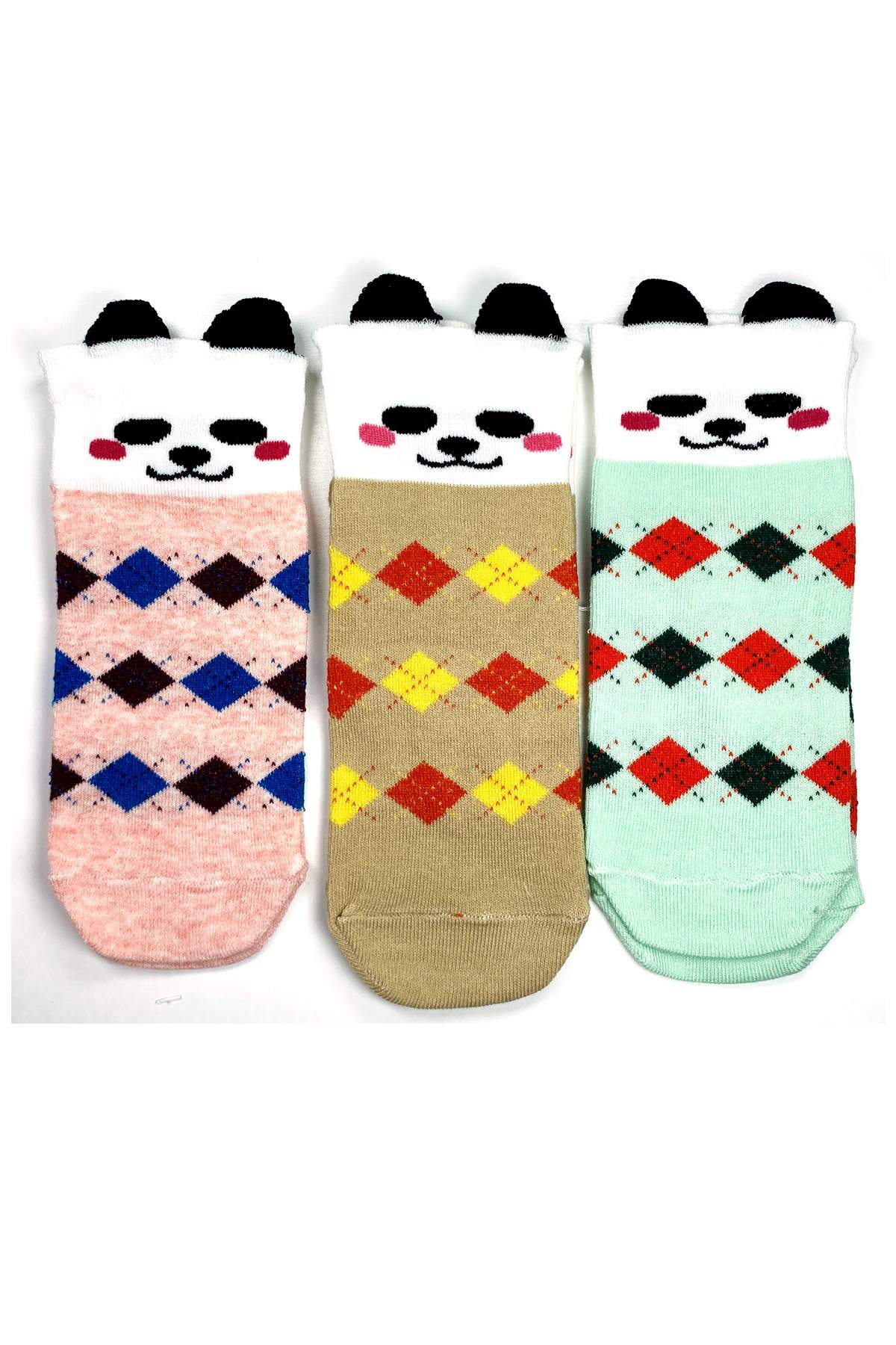 3 Çift Köpek Temalı 3 Boyutlu Kulaklı Pamuk Ekose Kadın Bilek Çorap