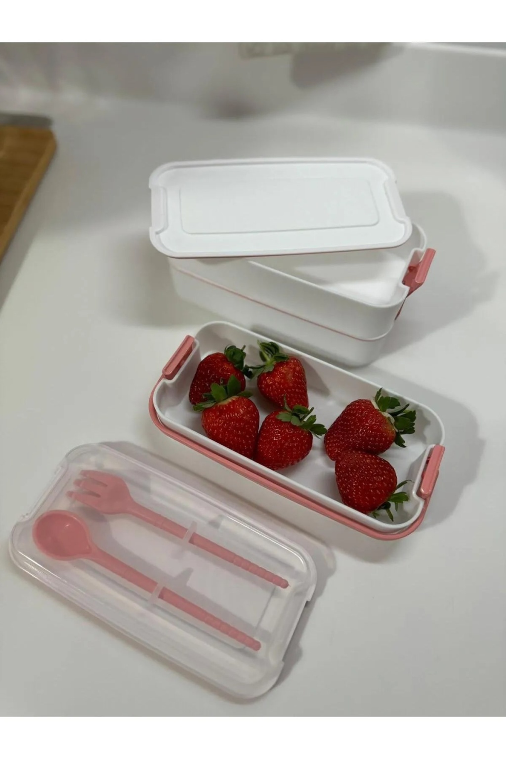 3 Katlı Kulplu Beslenme Kabı Diyet Sefer Tası Saklama Kabı Çatal Kaşıklı