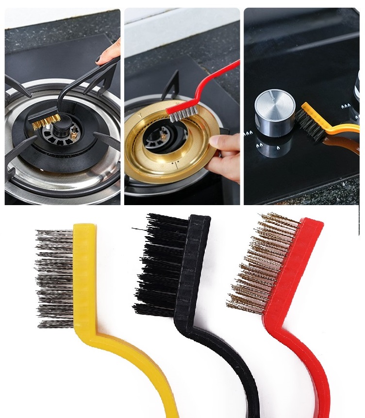 3 parça set, fırça malzemesi bakır tel, demir tel, sert plastik tel, etkili bir şekilde evin köşelerinin kirlerini temizlemek için yardımcı olabilir.