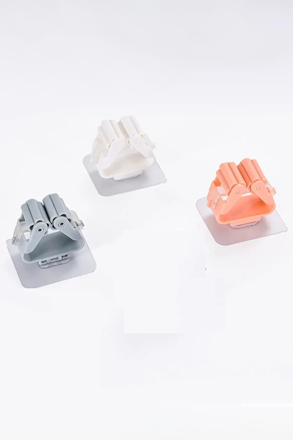 3 Lü Renkli Yapışkanlı Mop Fırça Çek pas Sap Tutucu Organizer Mutfak Banyo Düzenleyici