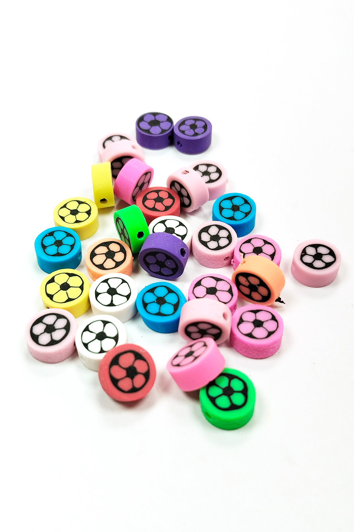 30 Adet 10 mm Polimer Kil Fimo Boncuk Takı Bileklik + 1 Metre Lastikli Misina Hediye - Renkli Çiçek
