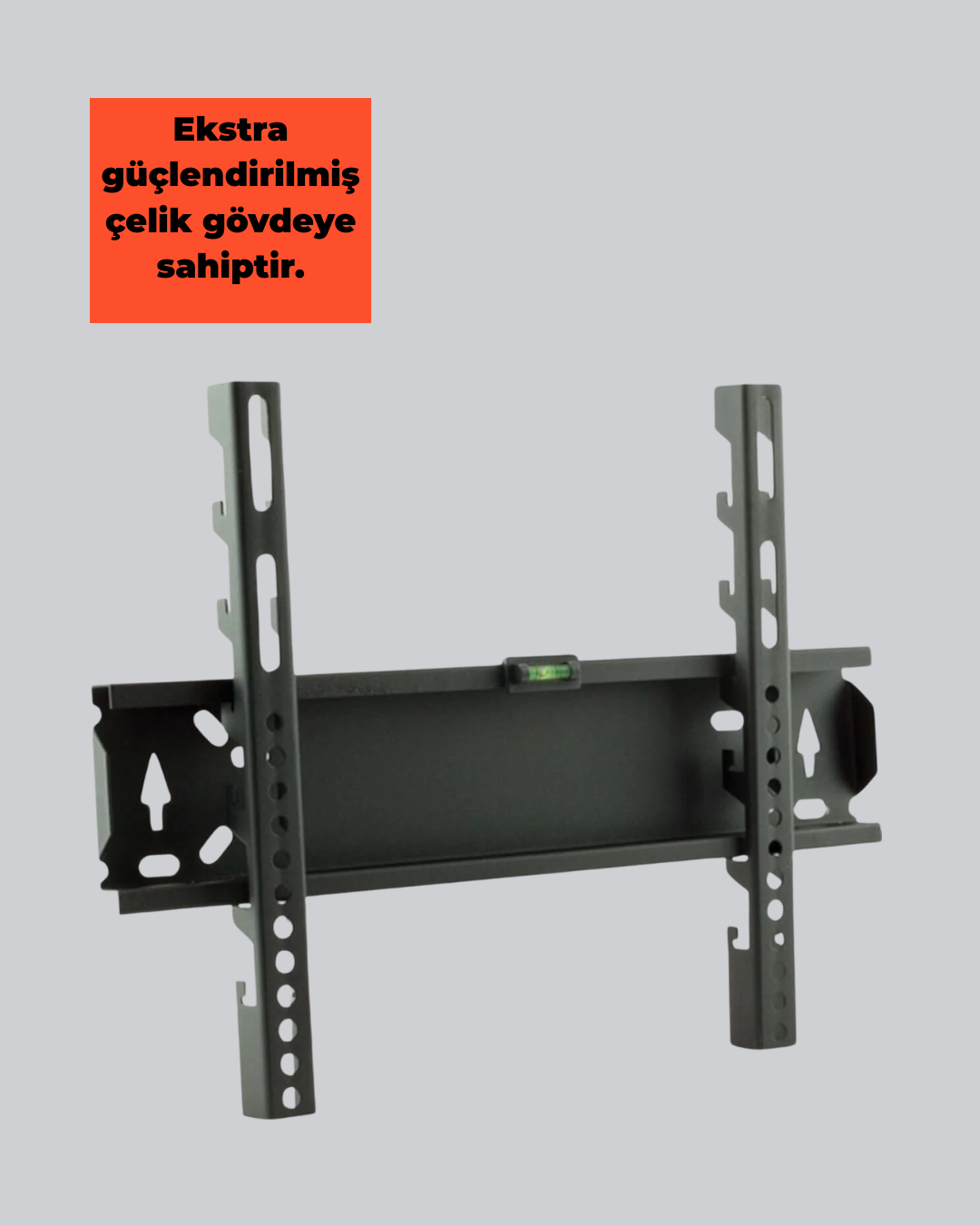 LCD–LED–Plasma TV Askı Aparatı, 32 ile 65 inç arasındaki tüm marka ve model televizyonlarla uyumlu olacak şekilde geliştirilmiş sağlam ve profesyonel bir montaj çözümüdür. Geniş ekran uyumluluğu sayesinde tek bir aparatla birçok farklı televizyonu güvenle duvara sabitleme olanağı sunar. Maksimum 75 kg taşıma kapasitesi, ürünün dayanıklılığını ve yük altında gösterdiği üstün performansı ortaya koyar. Büyük ekran TV’lerde bile tam güvenli kullanım sağlar.Aparatın gövdesi ekstra güçlendirilmiş çelik malzemeden üretilmiştir. Yüksek dayanım sunan bu özel üretim çelik yapı, televizyonun duvara sabitlenmesi sırasında maksimum stabilite sağlar. Çelik gövdede kullanılan malzemelerin tamamı Türkiye’de birinci sınıf kalite standartlarıyla üretilmiştir. Bu sayede hem sağlamlık hem uzun ömürlü kullanım garantilenir.Montaj sonrası televizyonu sağa–sola kaydırma imkânı bulunması, ekranın tam olarak merkezde konumlandırılmasını sağlar. Bu özellikle büyük ekran TV’lerde büyük avantaj sunar. Ayrıca üründe 3 kademeli yükseklik ayarı bulunmaktadır. Böylece televizyonu izleme mesafenize ve göz hizanıza en uygun şekilde ayarlayabilirsiniz.Üzerindeki anti-statik toz boya kaplama, aparatı paslanmaya ve çizilmelere karşı maksimum derecede dirençli hale getirir. Zamanla solma, aşınma, paslanma ya da yüzey bozulması gibi problemler oluşmaz. Hem iç hem dış mekânlarda uzun süreli kullanım için uygundur.Kurulum son derece pratik olup kutudan çıkan montaj kılavuzu ile adım adım yönlendirme yapılır. Montaj sırasında standarda uygun vida ve dübel setiyle kolay bir kurulum deneyimi sağlanır.Bu askı aparatı; salon, ofis, mağaza, restoran, otel ve toplantı salonlarında kullanılabilecek kadar güçlü, dayanıklı ve çok yönlüdür. Hem estetik hem işlevsel, hem de profesyonel bir montaj çözümü arayan kullanıcılar için en ideal tercihlerden biridir.