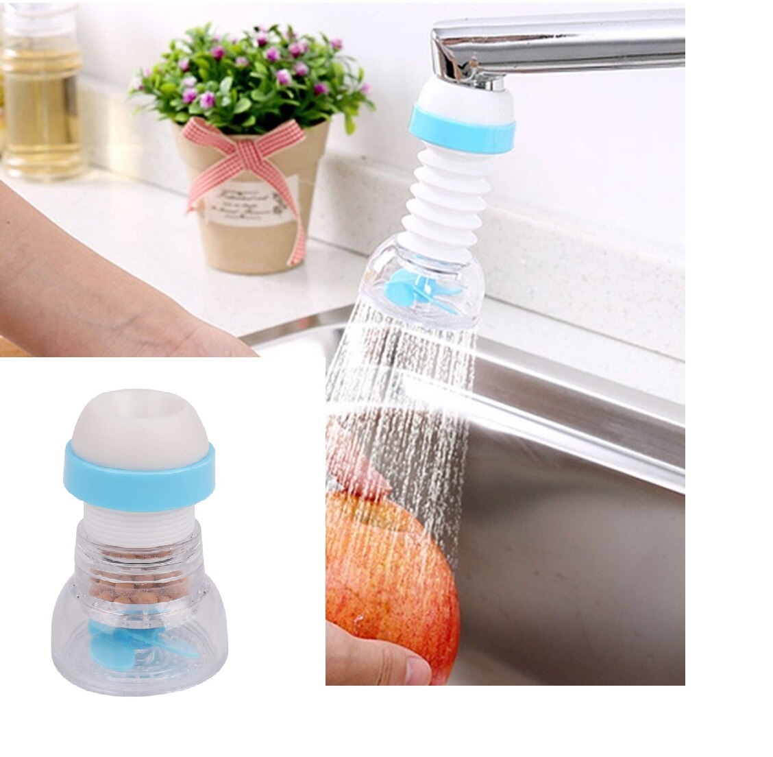 360 Derece Dönen Musluk Başlığı - Pervaneli Boncuklu Sıçratmaz Musluk Aparatı