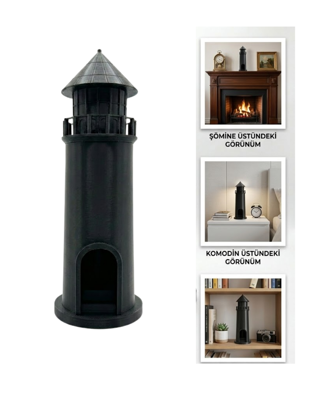 Minimal tasarım sevenler için öne çıkan 3D siyah deniz feneri, ev ve ofis dekorasyonunda şık bir tamamlayıcıdır. Kompakt boyutu sayesinde küçük alanlarda bile rahatlıkla konumlandırılabilir.Modern çizgileri ve sade formu ile bulunduğu ortama güçlü bir karakter kazandırır. Çalışma masası, kitaplık, TV ünitesi veya sehpa üzerinde estetik bir görünüm sağlar.Dayanıklı ve hafif yapısı uzun süreli kullanım sunar. İç haznesi dekoratif ışık veya mum ile kullanılmaya uygundur. Zamansız tasarımı sayesinde farklı dekorasyon stilleriyle kolayca uyum sağlar ve yaşam alanlarınıza farklı bir atmosfer kazandırır.