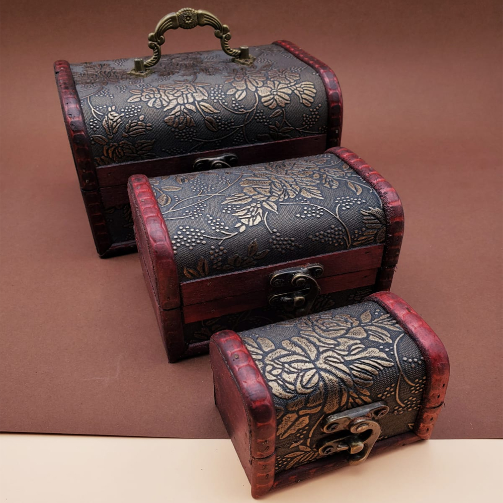 3'lü Ahşap Deri Sandık Kutusu