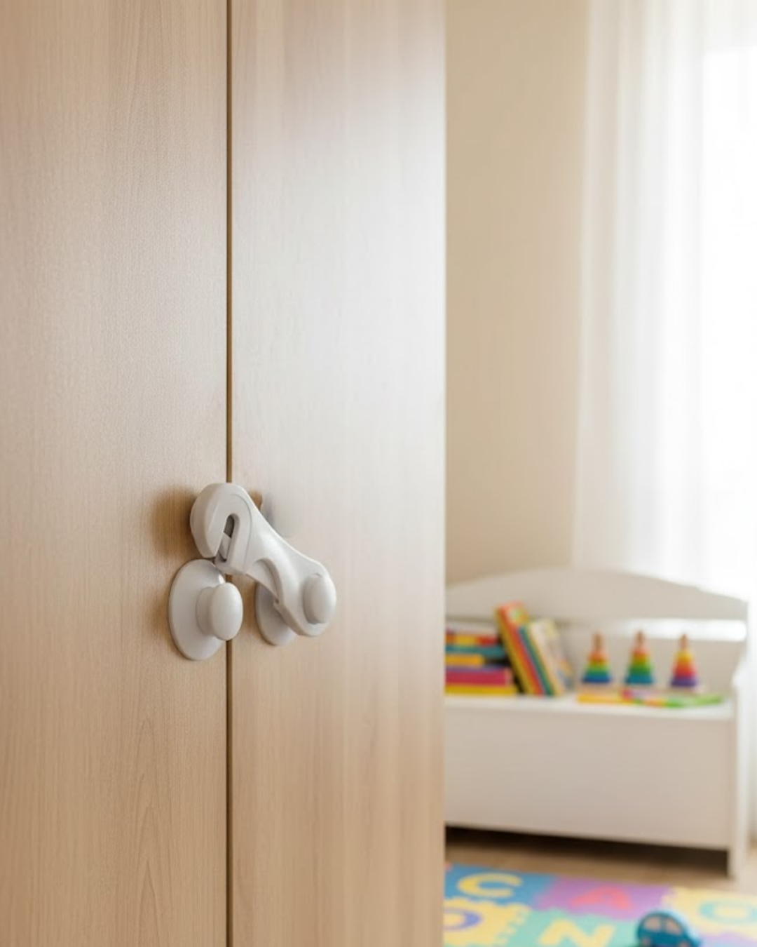 Çocukların dolap kapaklarını açarak tehlikeli eşyalara ulaşmasını önlemek için tasarlanan 4 adet dolap emniyet kilidi, ev güvenliğini artırmaya yardımcı olur. Kullanımı son derece basit olan bu ürün, güçlü yapışkan sistemi sayesinde yüzeye sıkıca tutunur. Montaj sırasında delme veya vida kullanımı gerekmediği için dolaplara zarar vermez.Ürün, sağlam plastik malzemeden üretilmiştir ve uzun süreli kullanıma uygundur. Günlük kullanımda esneme, kırılma veya deformasyon yapmaz. Çocukların açamayacağı kilitleme mekanizması, yetişkinler için ise kolay kullanım sunar. Bu sayede hem güvenlik hem de pratiklik bir arada sağlanır.Minimal tasarımı sayesinde mutfak dolaplarından TV ünitelerine, banyodan yatak odasına kadar birçok alanda rahatlıkla kullanılabilir. Evde düzen ve güvenliği birlikte isteyen ebeveynler için ideal bir çözümdür.