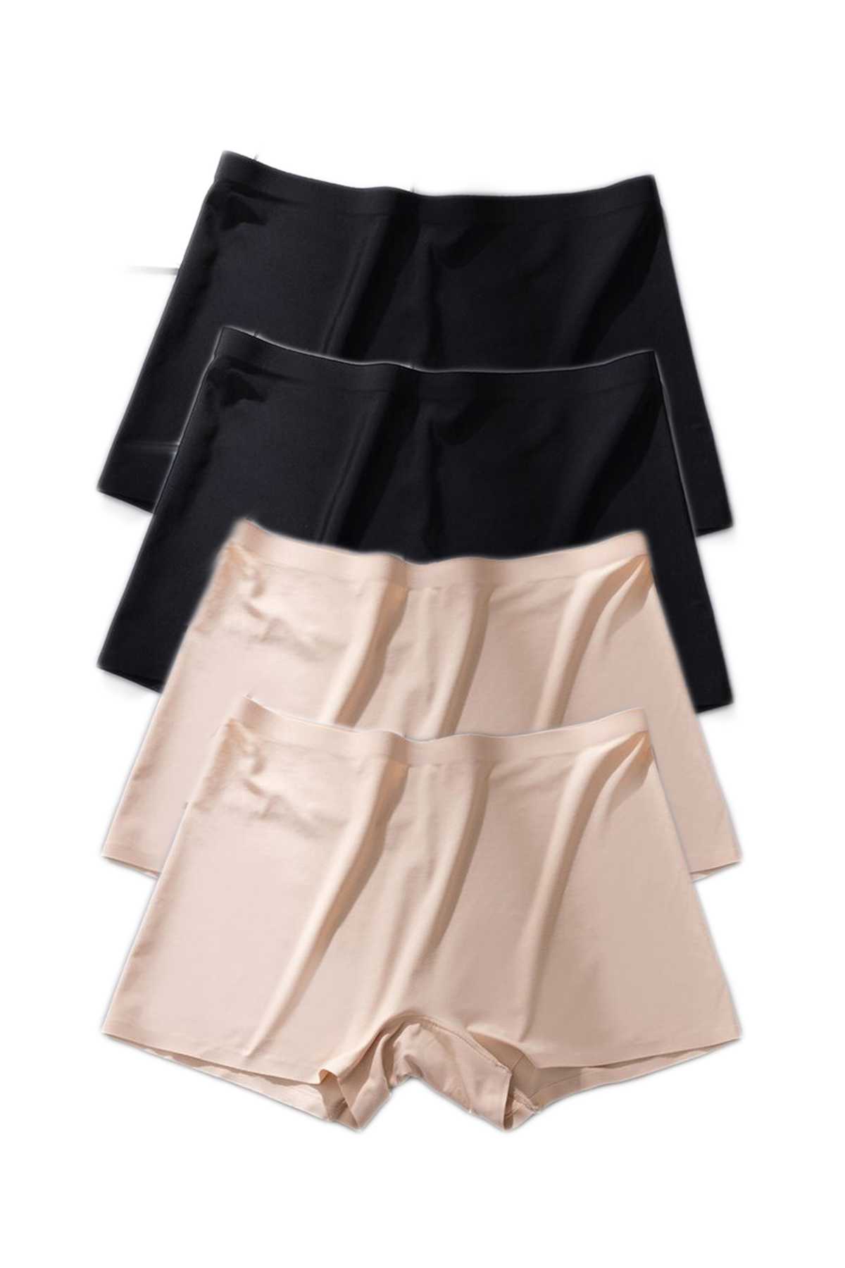 4 Adet Kadın Dikişsiz Görünmez İz Yapmaz Mini Şort Boxer Siyah Ten