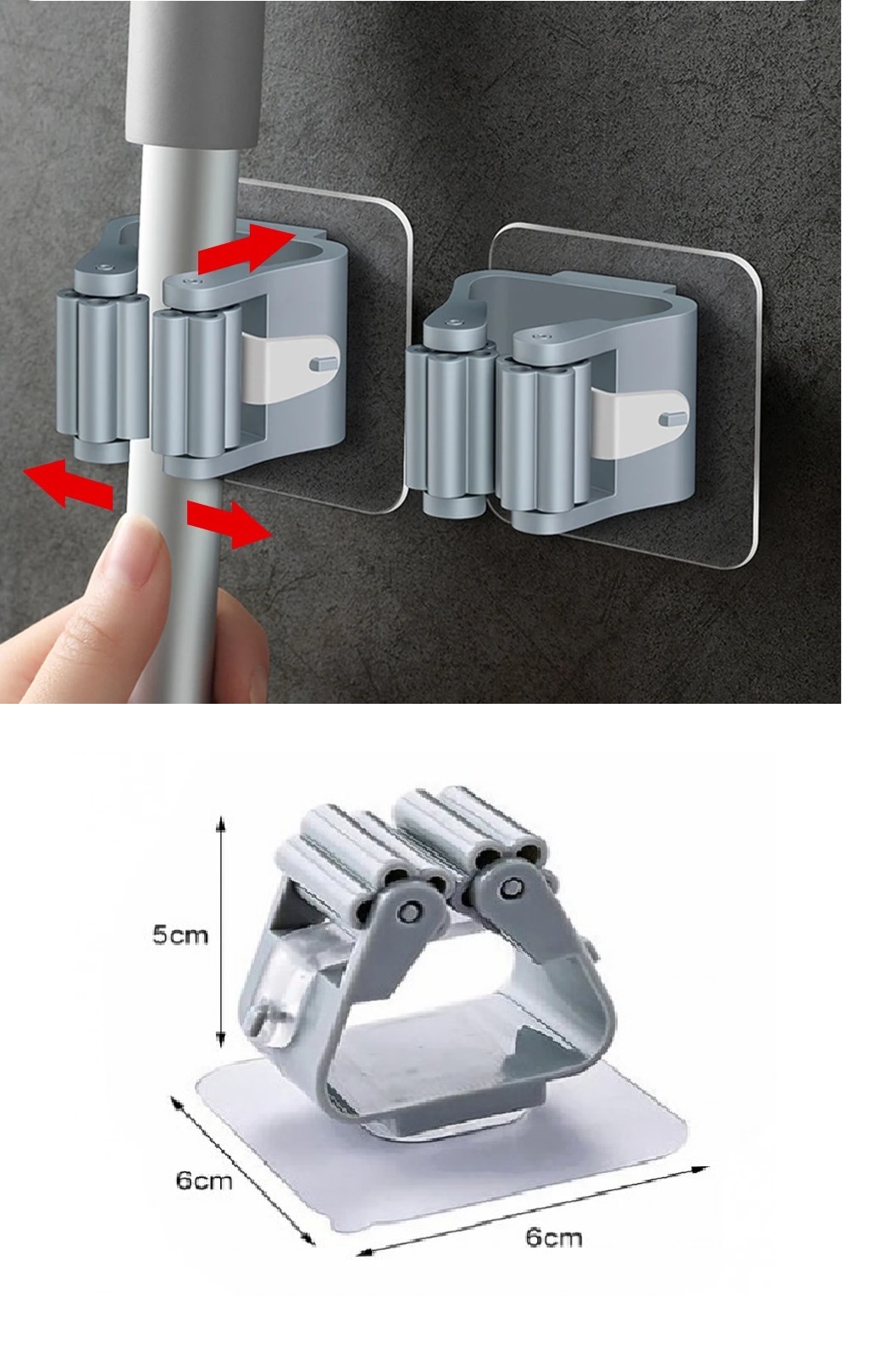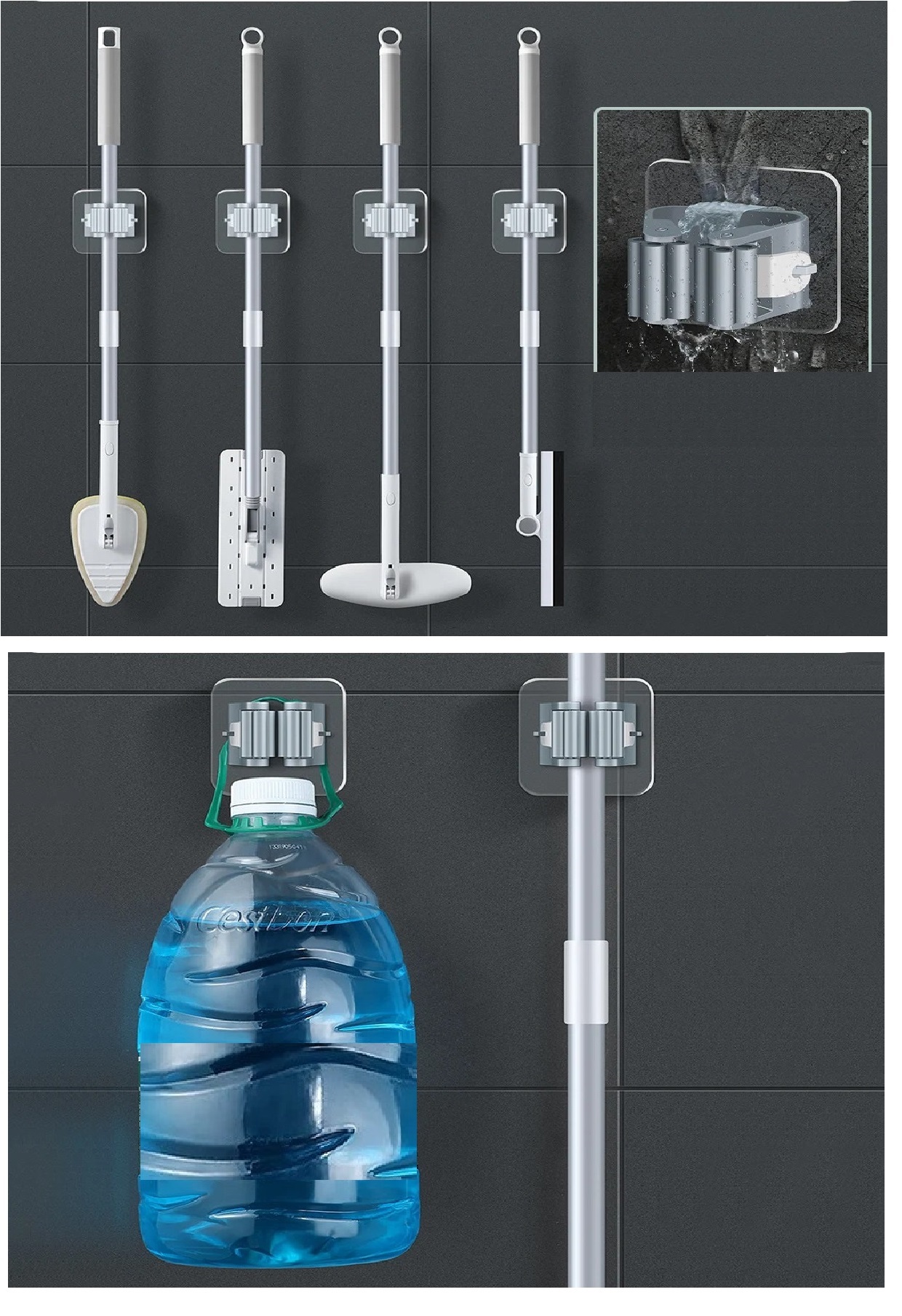 Süpürge, paspas, temizleme fırçası, şemsiye ve saplı diğer ürünleri asmak için kullanılabilir.