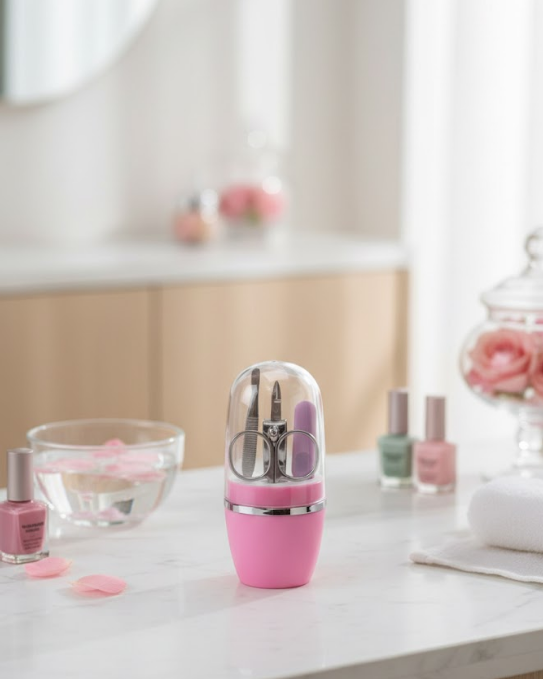 Şıklığı ve kullanışlılığı bir arada sunan Tırnak Bakım Manikür Pedikür Seti 4 Parça Pembe, sade tasarımıyla her yaş grubuna hitap eder. Kapsül formu sayesinde hem koruyucu hem de taşıması kolay bir yapı sunar.Set içeriğinde bulunan tırnak makası, manikür pedikür makası, cımbız ve törpü; günlük bakım ihtiyaçlarını eksiksiz şekilde karşılar. Metal yüzeyler sağlam yapısıyla dikkat çekerken, pembe detaylar ürüne estetik bir hava katar.Hediye alternatifi olarak da tercih edilebilecek bu ürün, kişisel bakımına önem verenler için ideal bir seçenektir. Düzenli, pratik ve şık bir manikür pedikür seti arayanlar için doğru bir tercihtir.