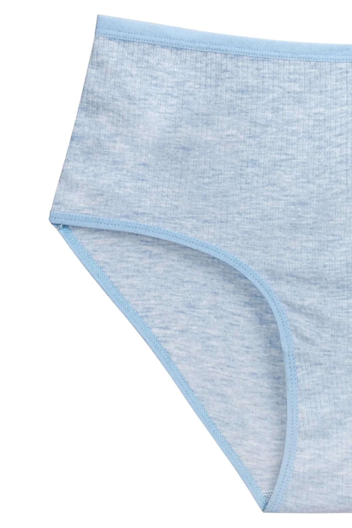 4'lü Yeni Seri Renkli Yüksek Bel Fitilli Ribana Bato Külot Mavi