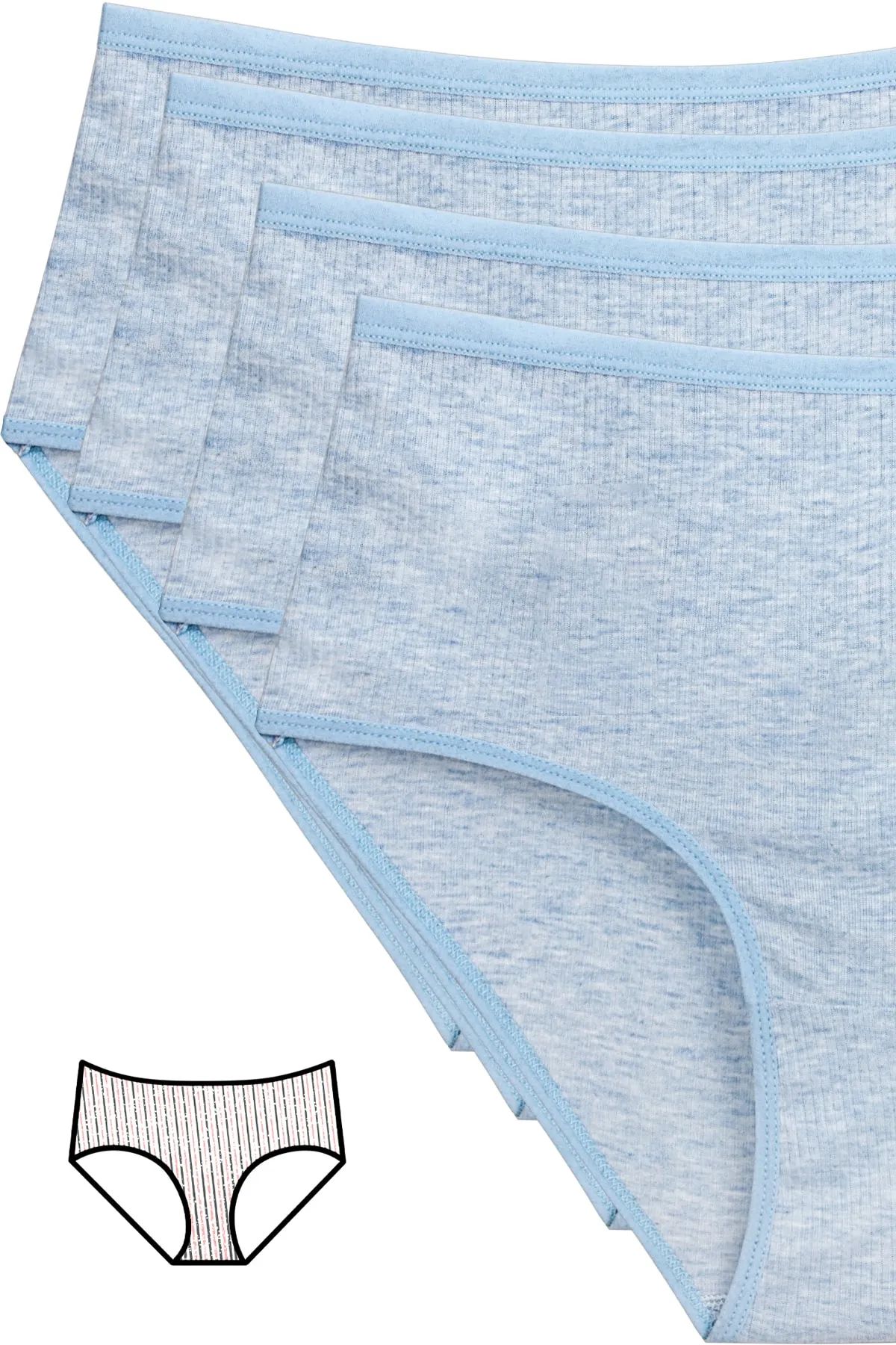Paket içeriği:  4'lü Yeni Seri Renkli Yüksek Bel Fitilli Ribana Bato Külot Mavi