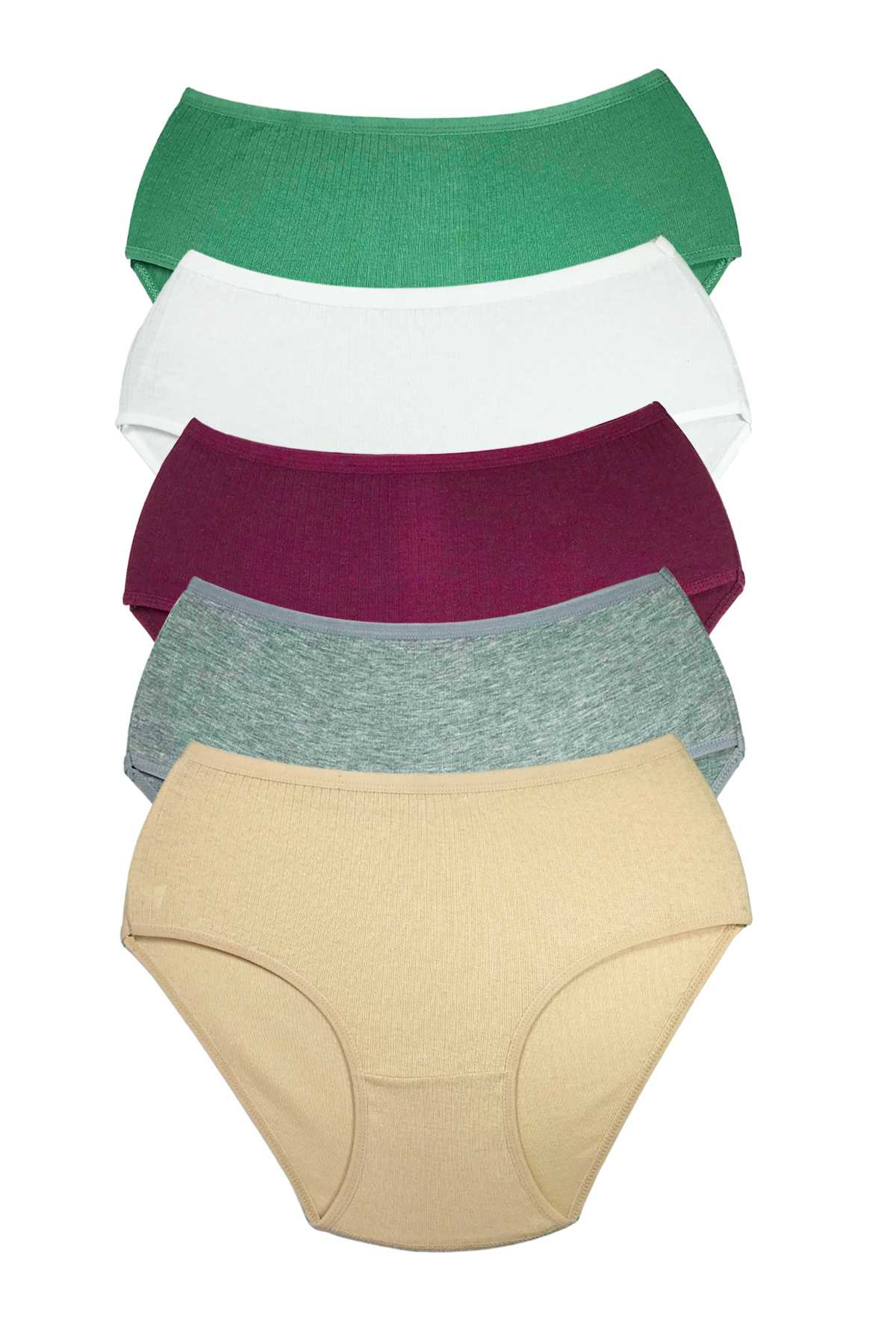 Paket İçeriği: 5 Adet Kadın Yüksek Bel Ribana Bato Külot Renk: Haki Beyaz Mürdüm Gri Melanj Ten