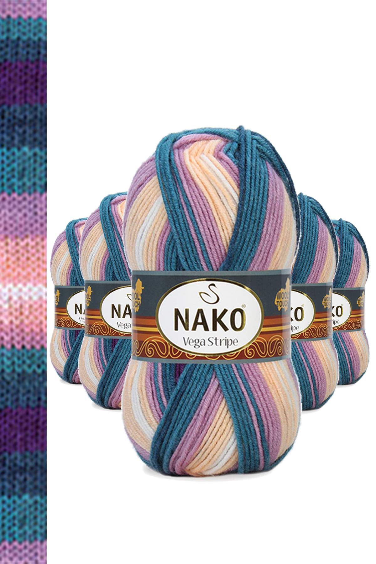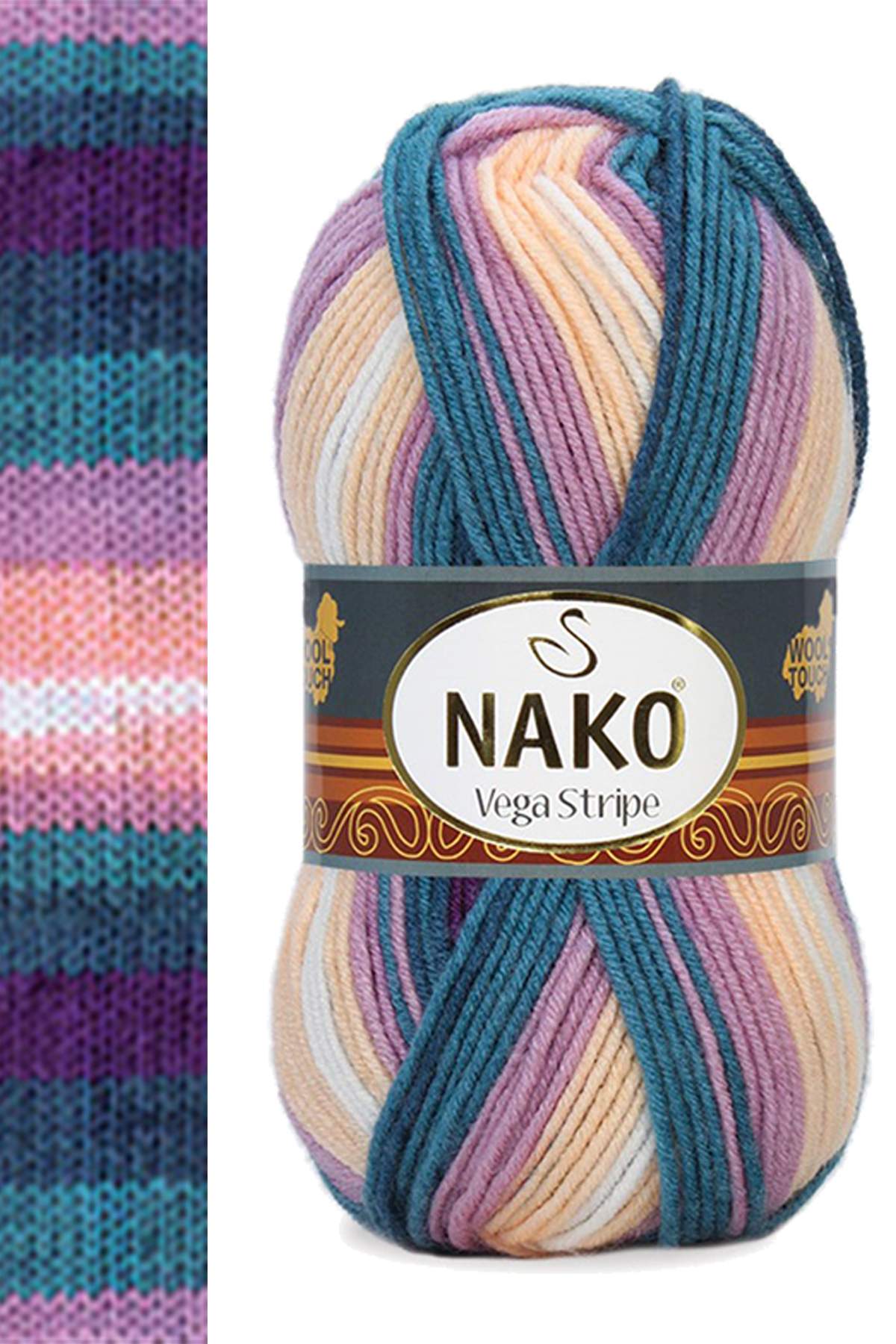 Paket içeriği:   5 Adet Vega Stripe Premium Akrilik El Örgü İpi Yünü No: 82416