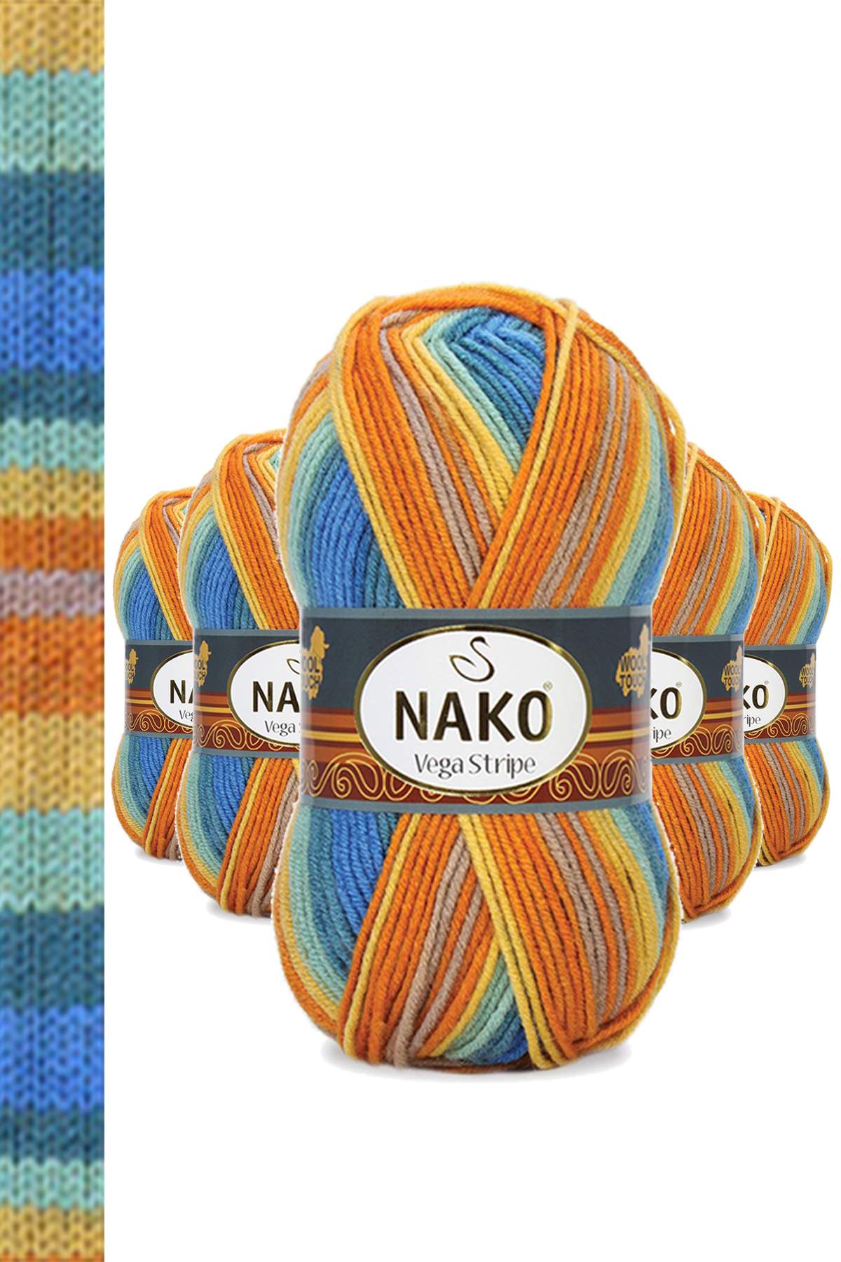 5 Adet Vega Stripe Premium Akrilik El Örgü İpi Yünü No: 82421