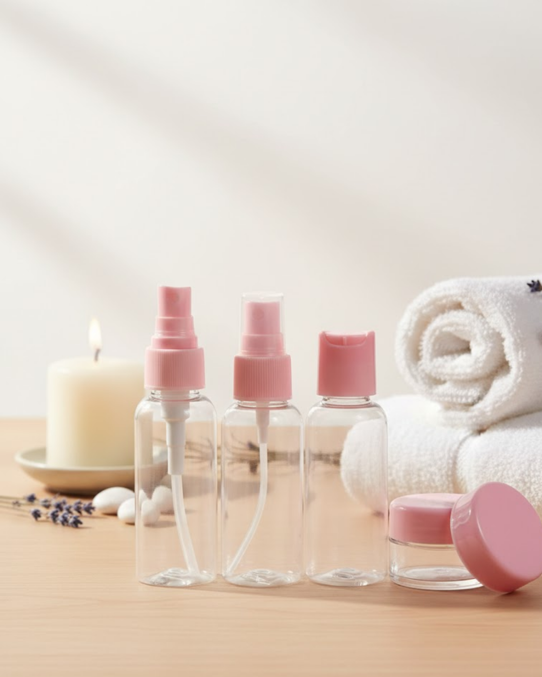 5 Parça Seyahat Boy Kozmetik Seti, minimal tasarımı ve fonksiyonel yapısı ile kişisel bakım rutininizi seyahatlerde de kesintisiz sürdürmenizi sağlar. Set içeriğinde bir adet 30 ml sıvı şişe, bir adet sprey şişe, bir adet şampuan kabı ve iki adet krem muhafaza kabı yer alır.Şeffaf tasarımı sayesinde içerisine doldurduğunuz ürünü net şekilde görebilir, doluluk oranını kolayca kontrol edebilirsiniz. Esnek yapısı sayesinde sıkma işlemi rahatlıkla yapılabilir ve kullanım kolaylığı sağlar.Sızdırmaz kapak teknolojisi, seyahat sırasında çanta içinde güvenli taşıma sunar. Özellikle uzun yolculuklarda veya spor sonrası kullanımda pratiklik sağlar. Fermuarlı taşıma çantası, düzenli ve hijyenik saklama imkanı sunarak dağınıklığı önler.Kompakt ölçüleri sayesinde el bagajına uygundur ve yer tasarrufu sağlar. Günlük kullanım, spor salonu, tatil ve kamp gibi farklı alanlarda rahatlıkla kullanılabilir.