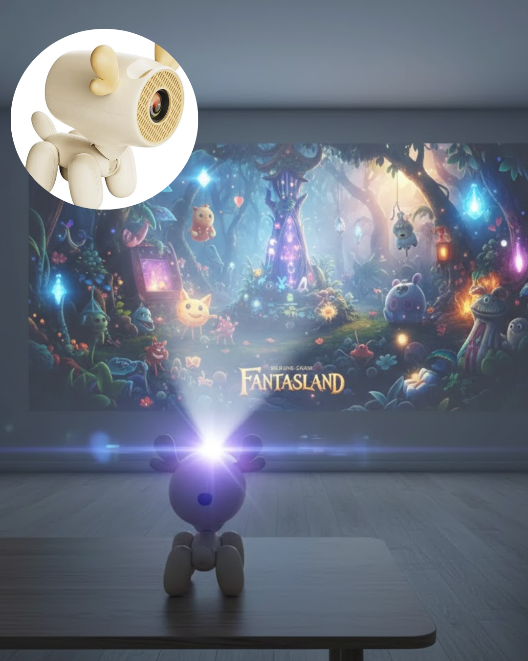 Geyik tasarımlı akıllı projeksiyon cihazı, estetik görünümü ve güçlü teknik özellikleri bir araya getiren modern bir ev eğlence çözümüdür. Sevimli ve kompakt form faktörü sayesinde çocuk odasından salona kadar her ortama uyum sağlar. Döner başlık tasarımı ve entegre stand yapısı sayesinde farklı açılarda konumlandırma imkanı sunar. Bu özellik, projeksiyonu duvara veya tavana kolayca yönlendirmeyi mümkün kılar.4K içerik desteği sayesinde yüksek çözünürlüklü medya dosyalarını sorunsuz şekilde oynatabilir. 500 ANSI lümen parlaklık değeri, net ve canlı görüntü performansı sunar. Bu sayede hem karanlık hem de yarı loş ortamlarda tatmin edici bir görüntü kalitesi elde edilir. Renkler canlı, detaylar keskin ve kontrast seviyesi dengelidir. Film, animasyon ve dizi içeriklerinde sürükleyici bir deneyim sağlar.Android tabanlı akıllı sistem sayesinde Netflix, YouTube ve benzeri popüler uygulamalara doğrudan erişim mümkündür. Harici bir medya oynatıcıya ihtiyaç duymadan internet üzerinden içerik izleyebilirsiniz. Dahili WiFi ve Bluetooth bağlantı özellikleri kablosuz kullanım kolaylığı sağlar. Ayrıca HDMI, USB ve TF kart girişleri ile geniş bağlantı seçenekleri sunar.36W gücünde dahili hoparlör sistemi ve Dolby Audio desteği sayesinde güçlü, temiz ve oda dolduran ses performansı sunar. Ekstra hoparlör ihtiyacı olmadan film ve müzik keyfi yaşatır.