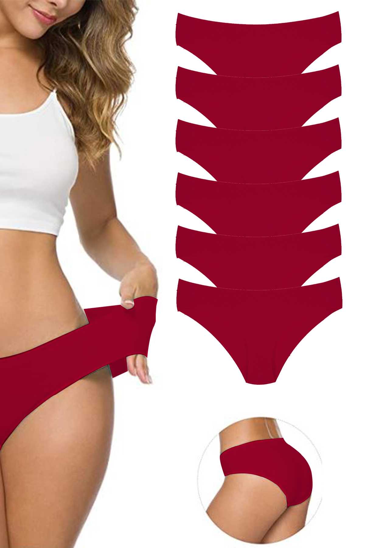 6 Adet Kadın Dikişsiz Lazer Kesim Esnek İz yapmayan Külot Bordo