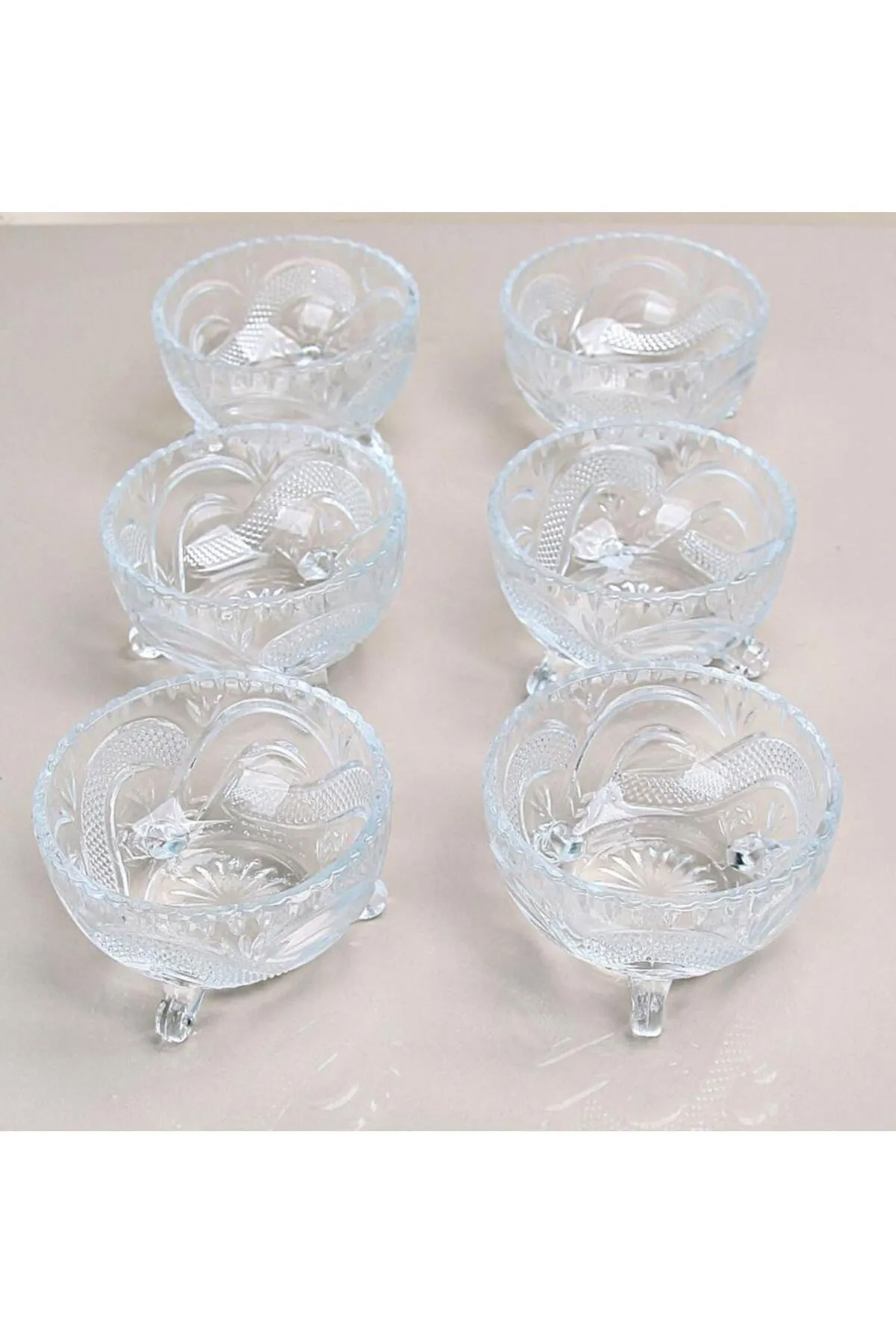 6'lı Kristal Lüx Ayaklı Cam Çerezlik Şekerlik Sunumluk Kase