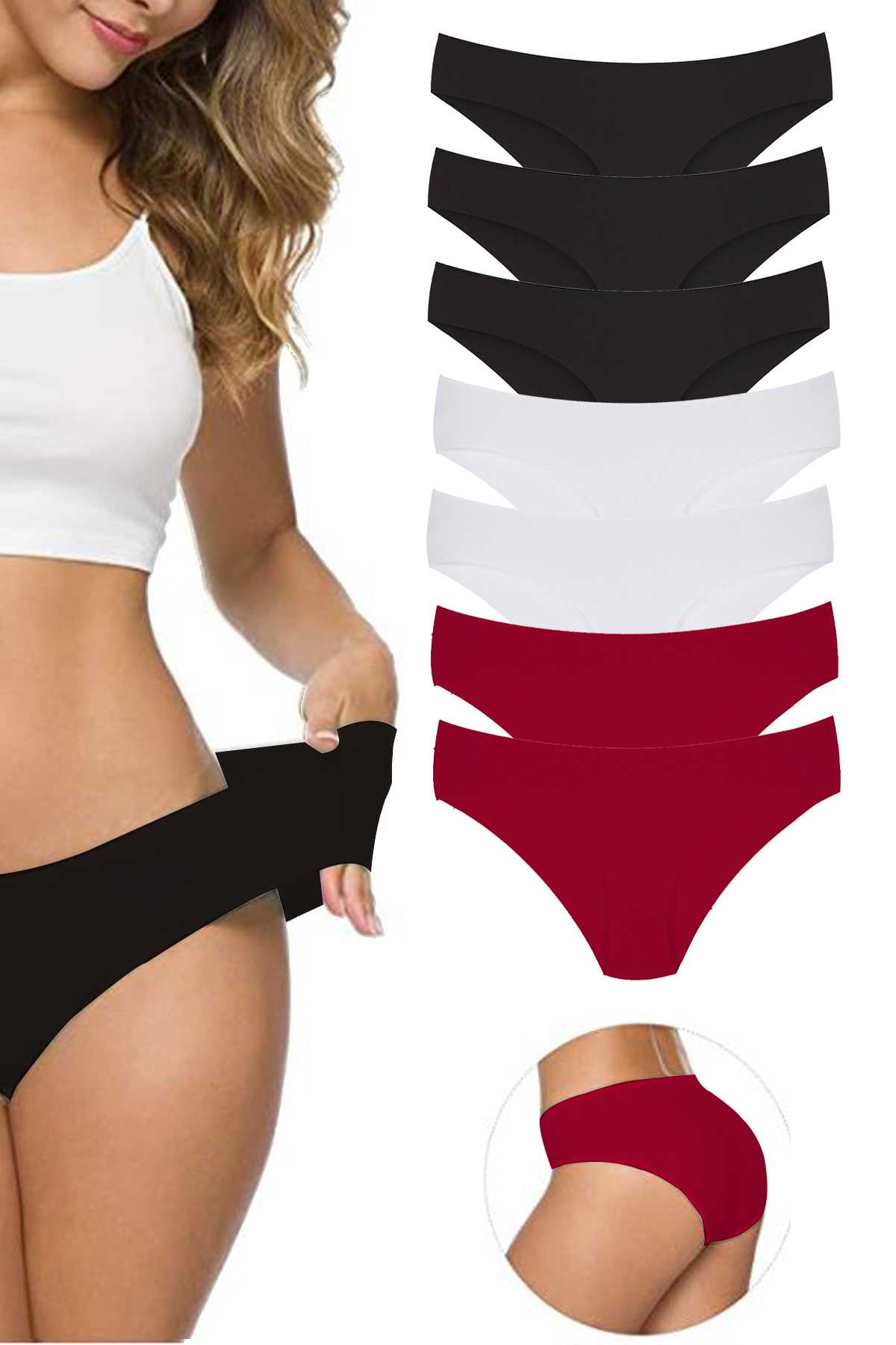 7 Adet Kadın Dikişsiz Lazer Kesim Esnek İz yapmayan Külot Siyah Beyaz Bordo