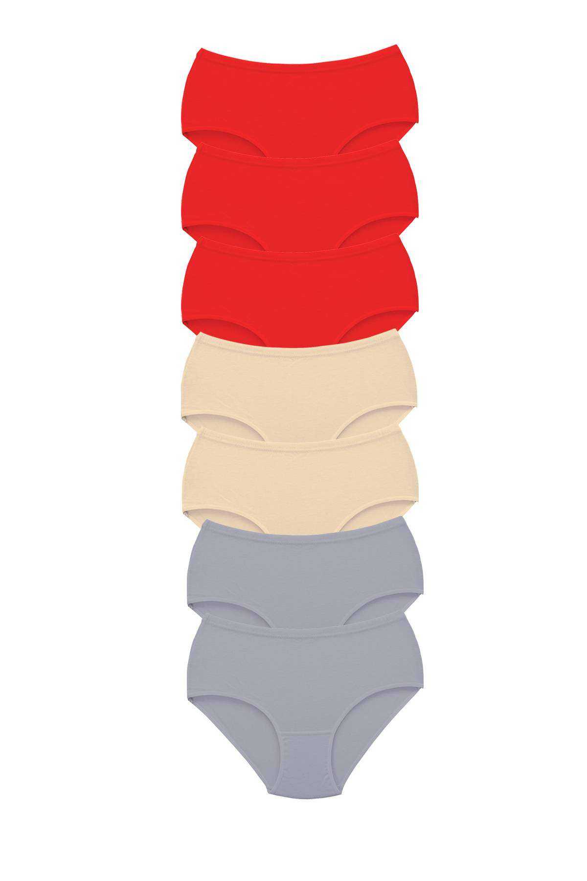 7 Adet Tutku Kadın Yüksek Bel Bato Kalın Lastik Külot Kırmızı Ten Gri