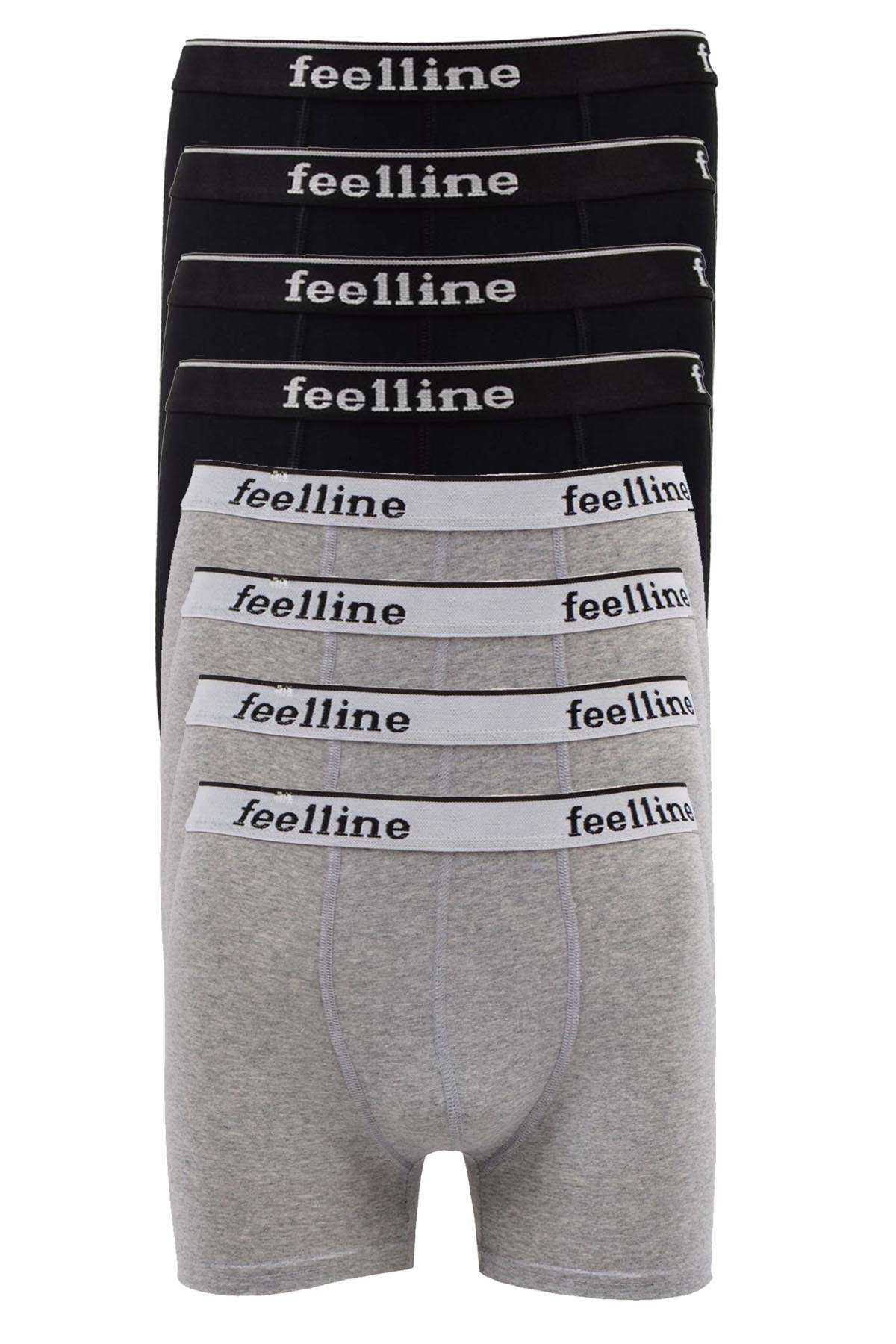 8 adet Feelline Siyah ve Gri Pamuklu Doğal Likralı Erkek Boxer