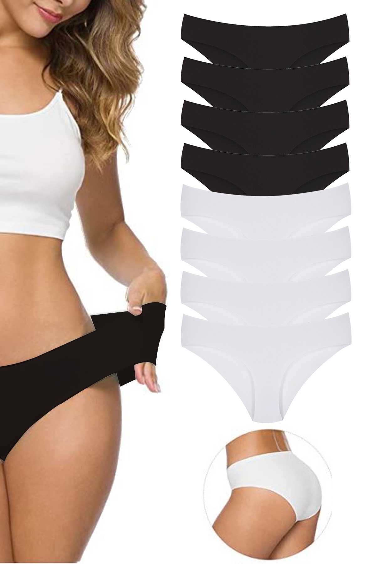 8 Adet Kadın Dikişsiz Lazer Kesim Esnek İz yapmayan Külot Siyah Beyaz