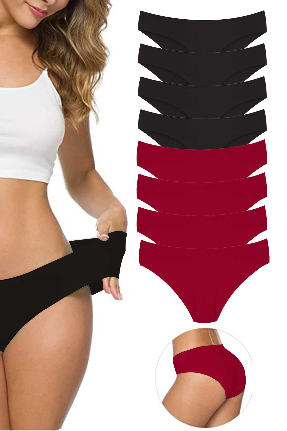 8 Adet Kadın Dikişsiz Lazer Kesim Esnek İz yapmayan Külot Siyah Bordo