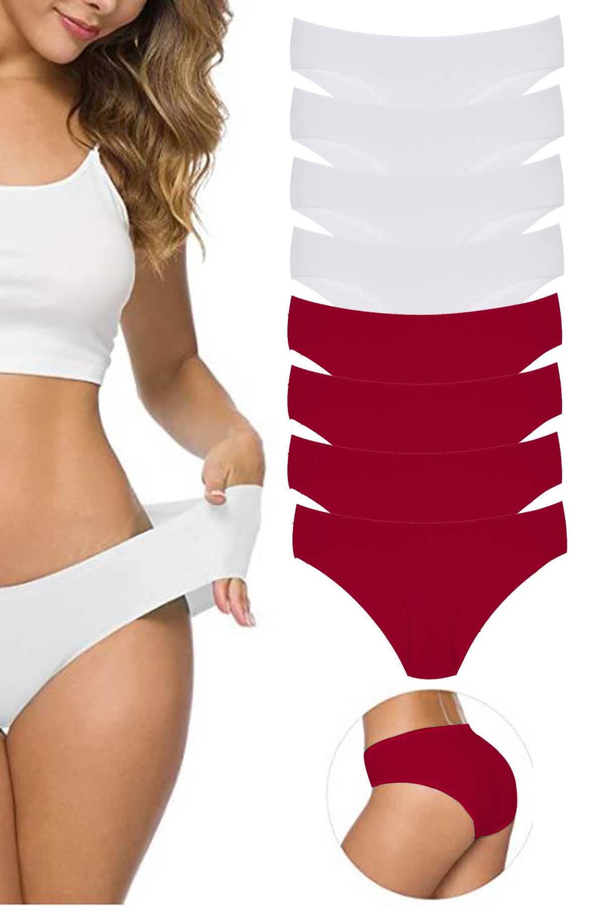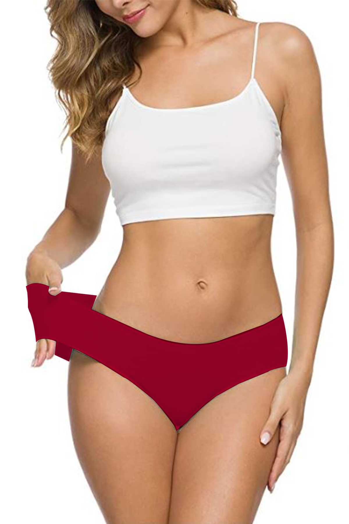 8 Adet Kadın Dikişsiz Lazer Kesim Esnek İz yapmayan Külot Beyaz Bordo